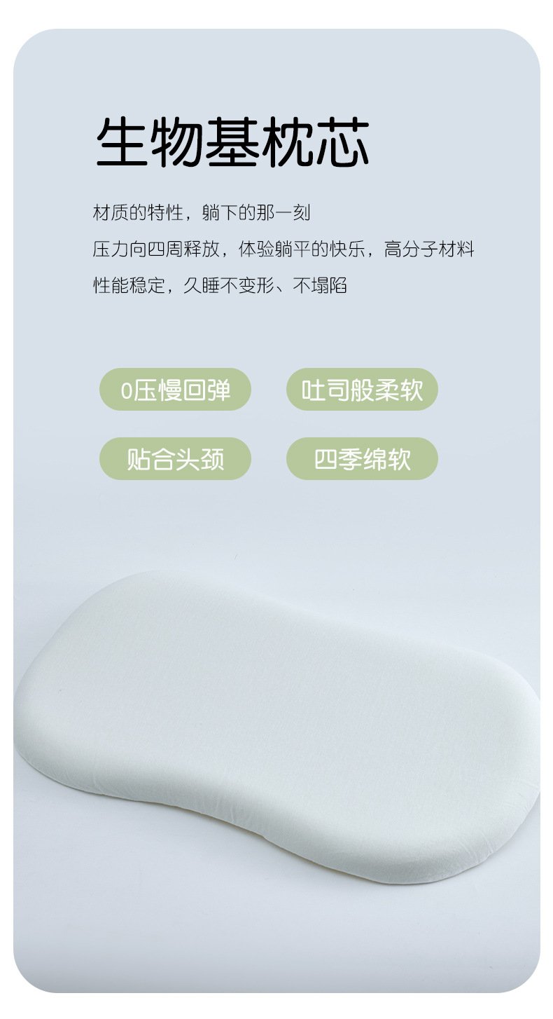 부드럽고 편안한 바이오 기반 베개 쿠션, 어린이용 부드럽고 시원한 유기 기반 제로압 메모리폼 베개