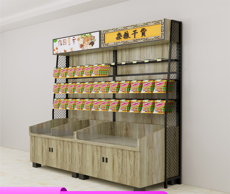 슈퍼마켓 벽 기울기 시리얼 말린 과일 스낵 디스플레이 캐비닛 식품 쌀 국수 곡물 및 석유 전문 제품 튀김 매장 선반스토어 가기