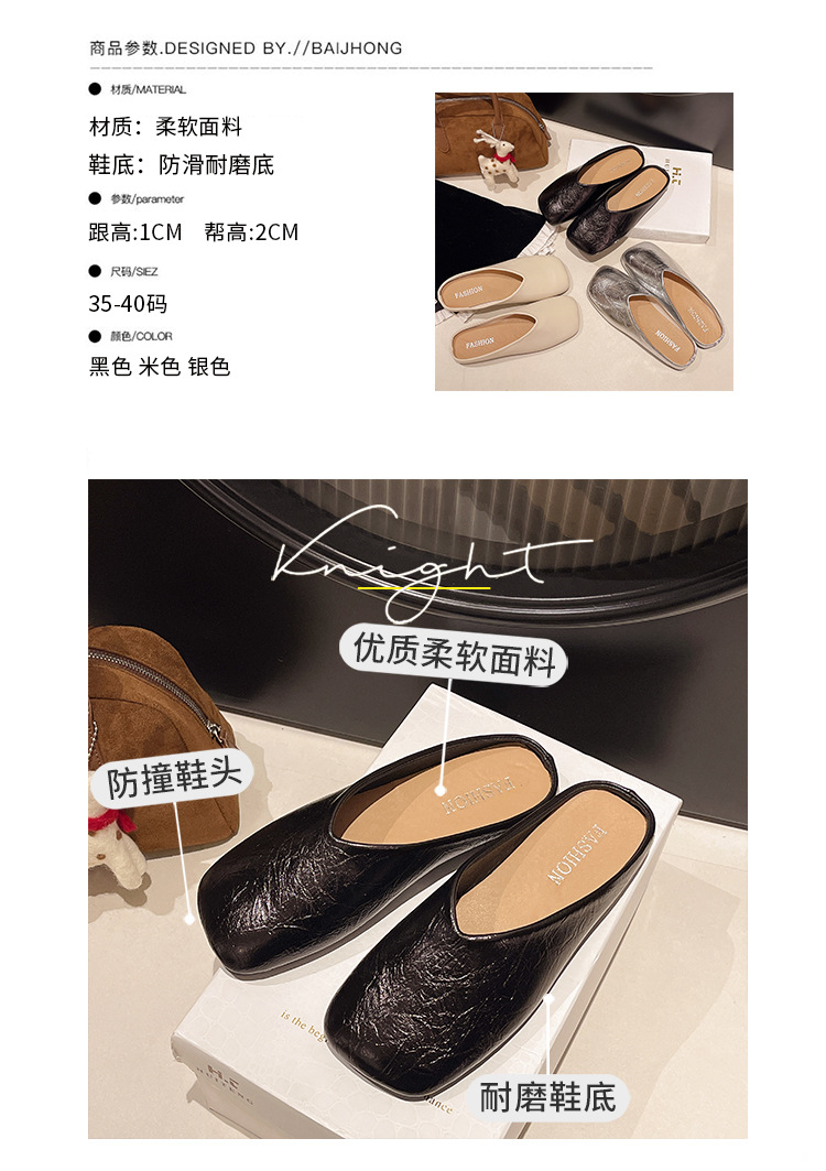2025 새로운 도착 바오터우 하프 슬리퍼 여성 한국식 젠틀 페어리 소프트 플랫 캐주얼 슬립온 뮬러스토어 가기