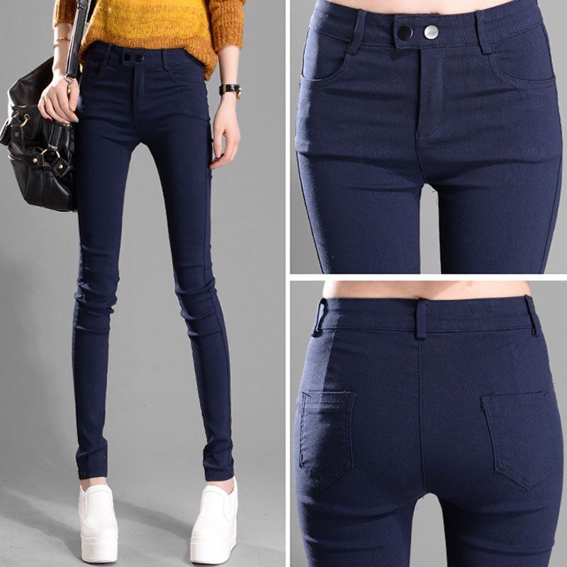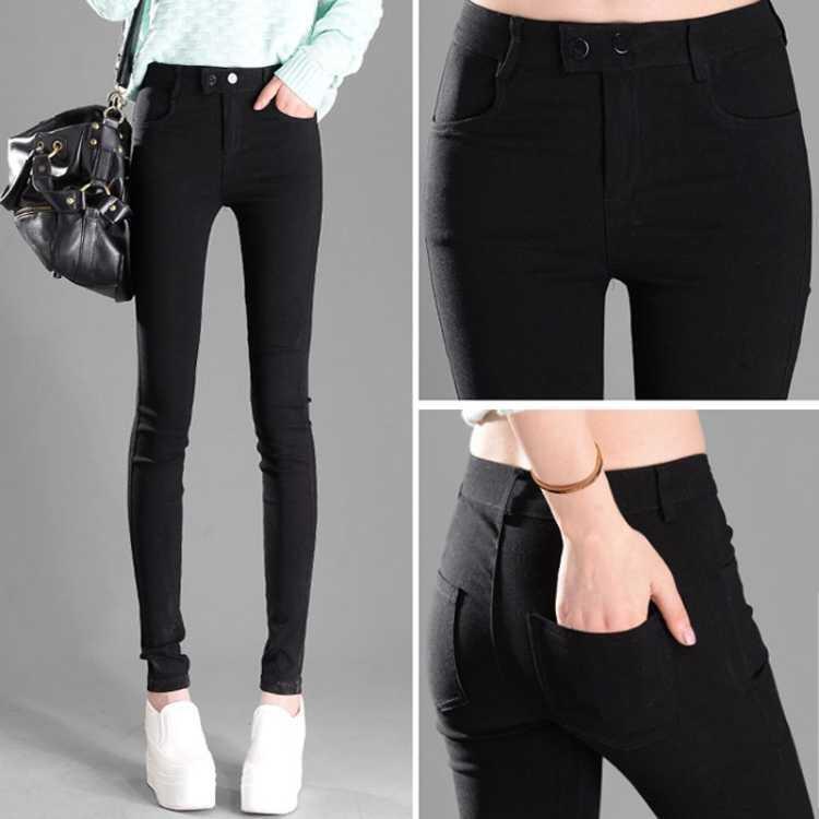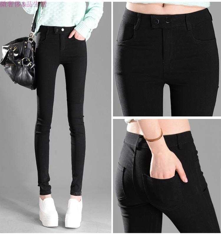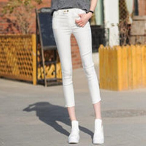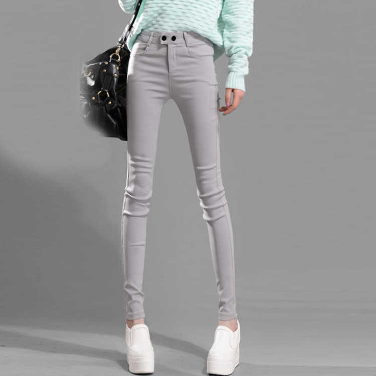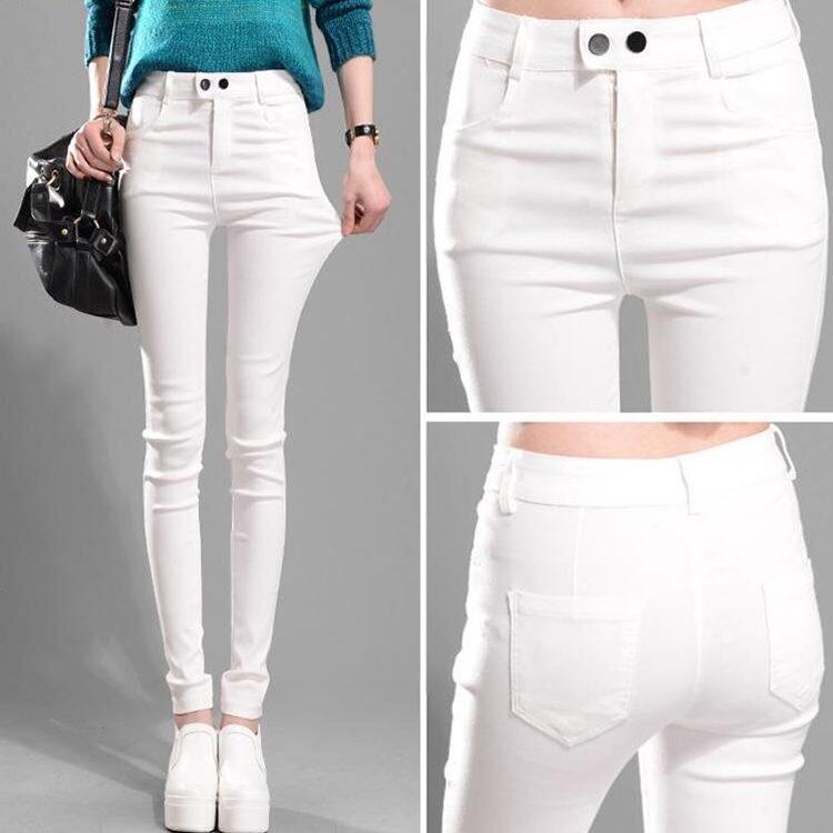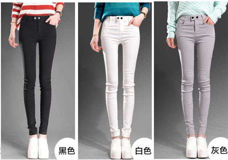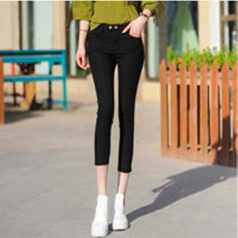 봄과 가을 얇은 검은 외부 착용 레깅스 여성용 흰색 긴 바지 높은 허리 8 점 레깅스 학생 연필 바지