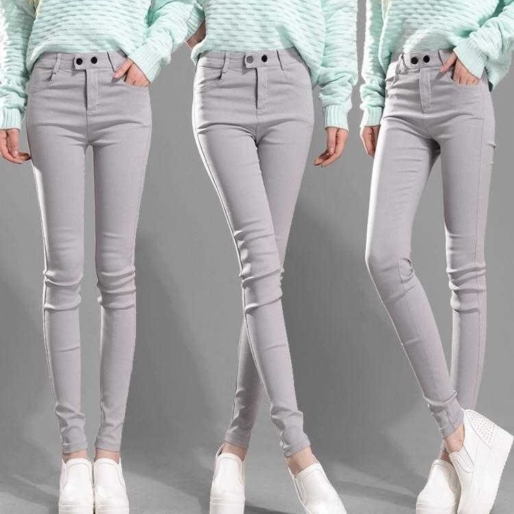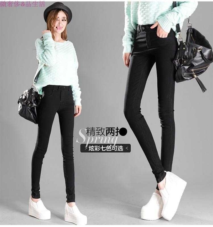 봄과 가을 얇은 검은 외부 착용 레깅스 여성용 흰색 긴 바지 높은 허리 8 점 레깅스 학생 연필 바지스토어 가기