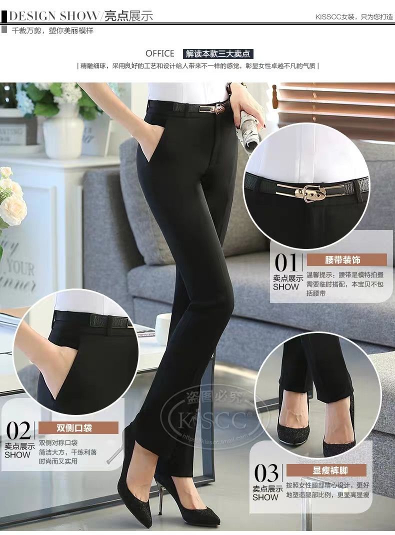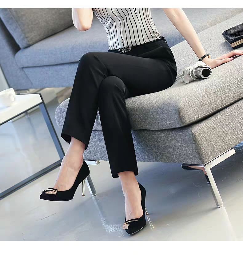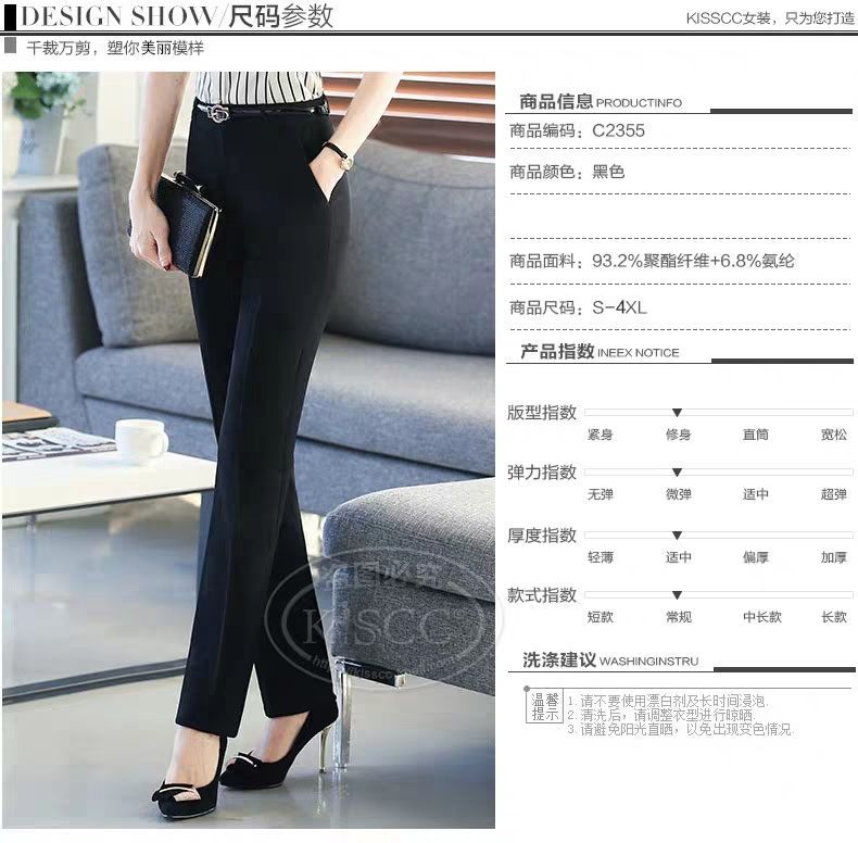 봄, 가을, 겨울 여성용 블랙 세트 바지 높은 허리 스트레이트 튜브 슬림 핏 비즈니스 세트 바지 세트 바지 작업 바지 바지스토어 가기