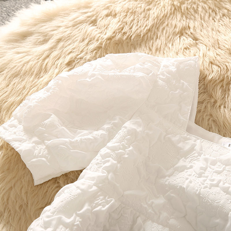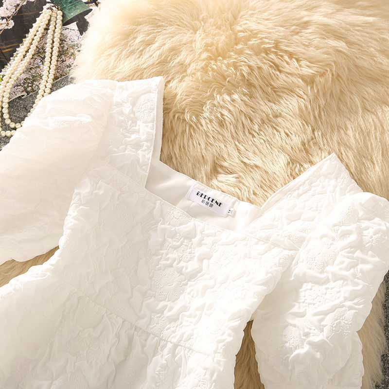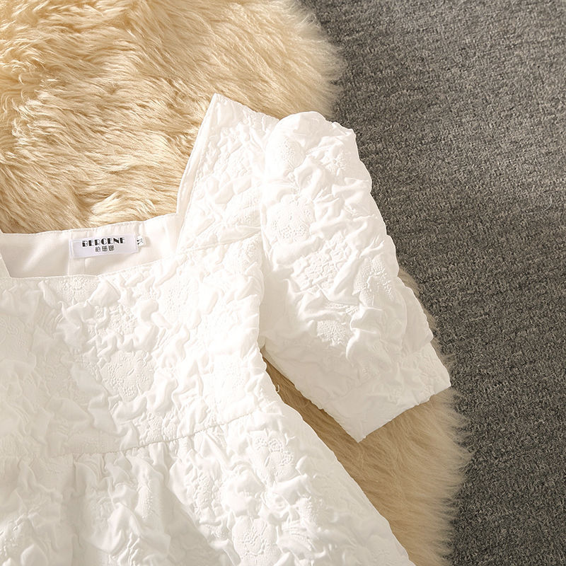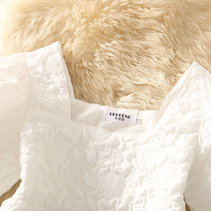 V1M 작은 세트 여자 2025 여름 새로운 프랑스 광장 칼라 퍼프 소매 인형 셔츠 높은 허리 반바지 두 조각스토어 가기