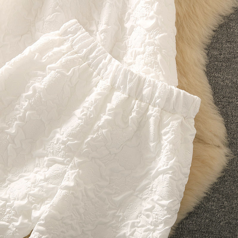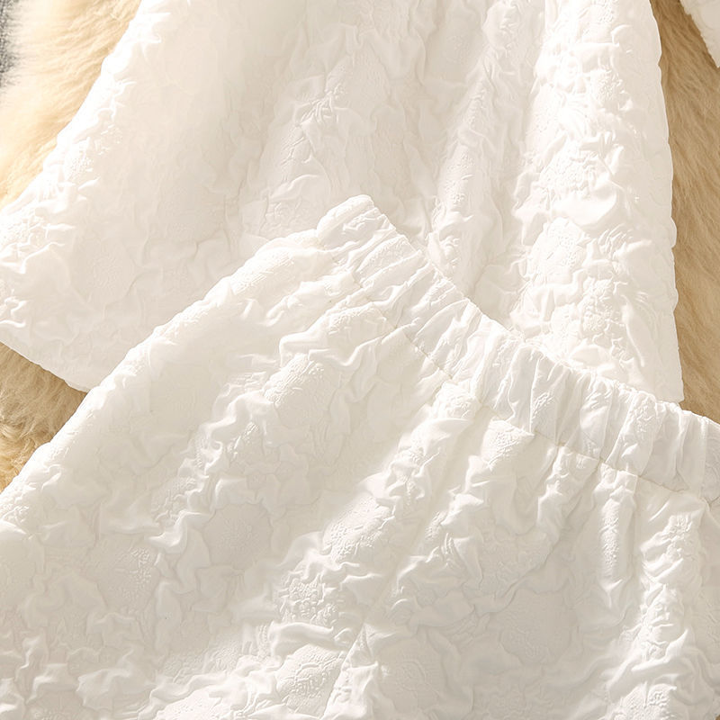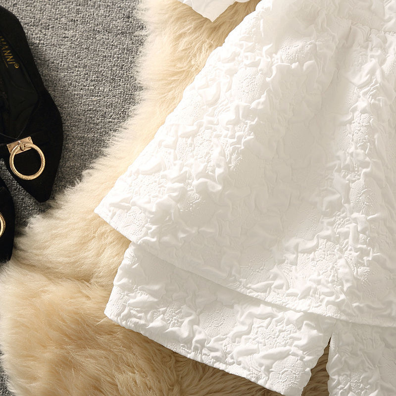 V1M 작은 세트 여자 2025 여름 새로운 프랑스 광장 칼라 퍼프 소매 인형 셔츠 높은 허리 반바지 두 조각
