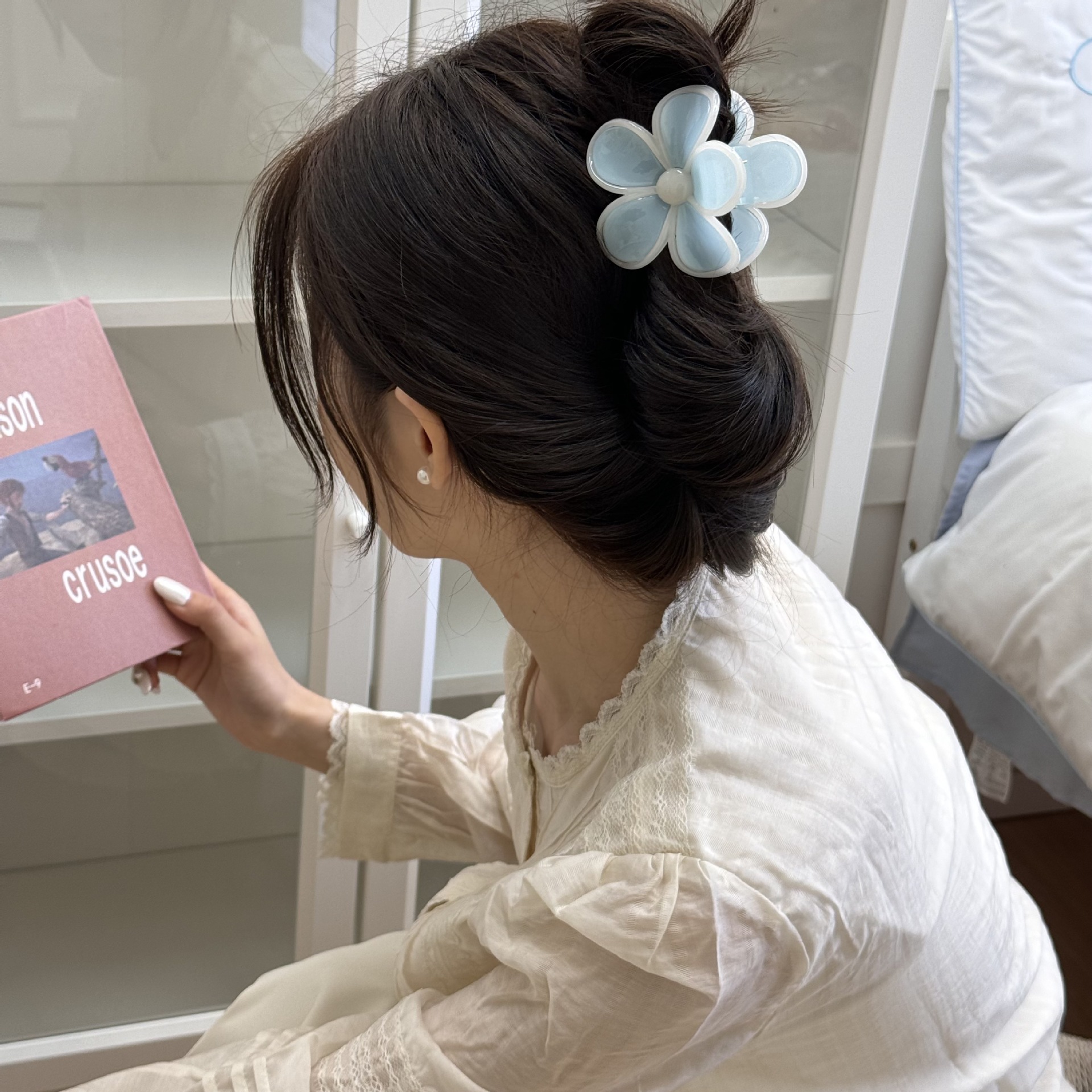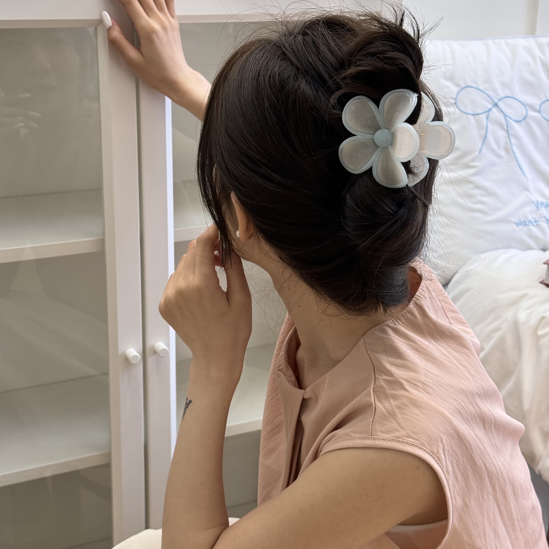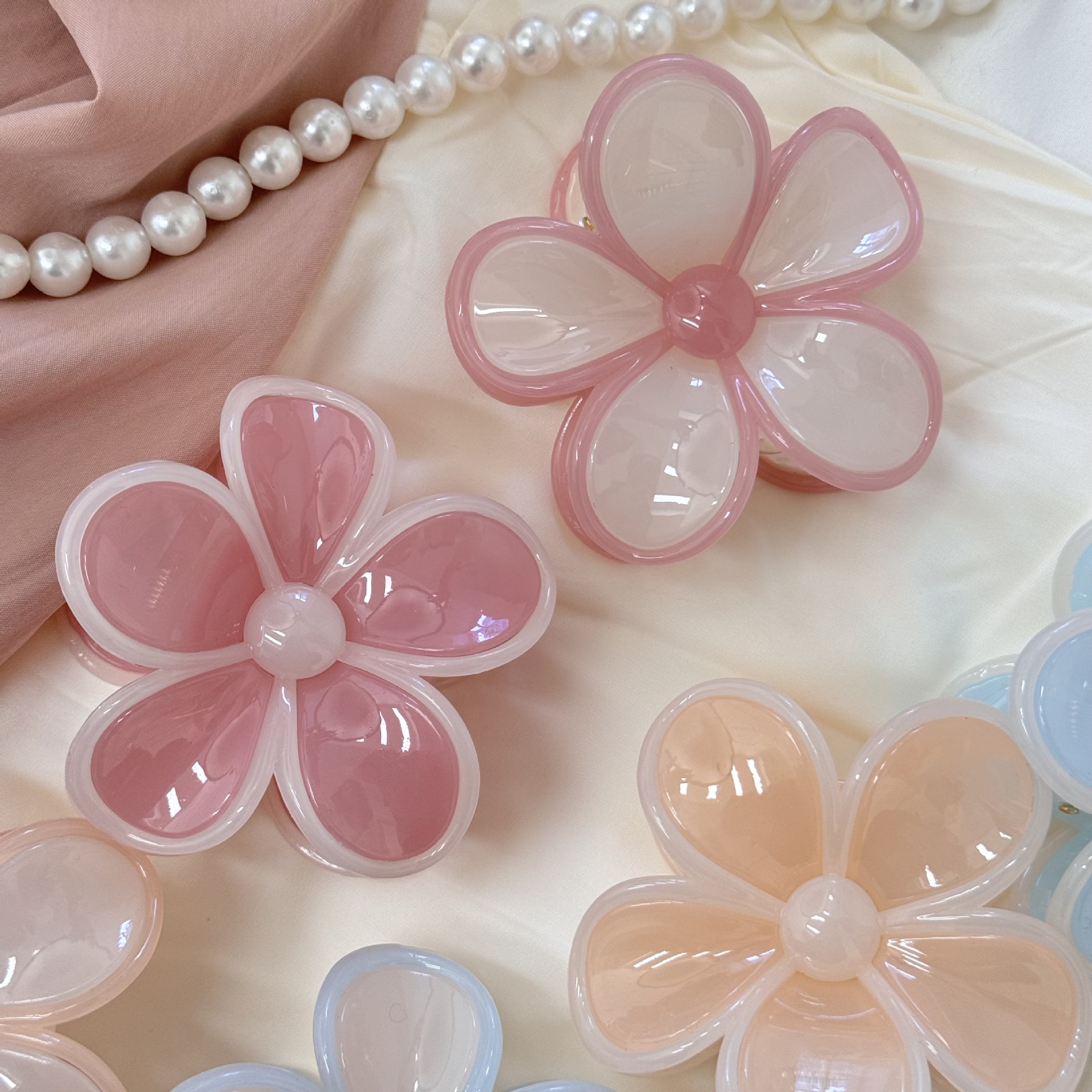 크림 젤리 배색 꽃 모양 헤어 집게핀 2025 헤어 집게핀 반묶음 머리핀 헤어 액세서리