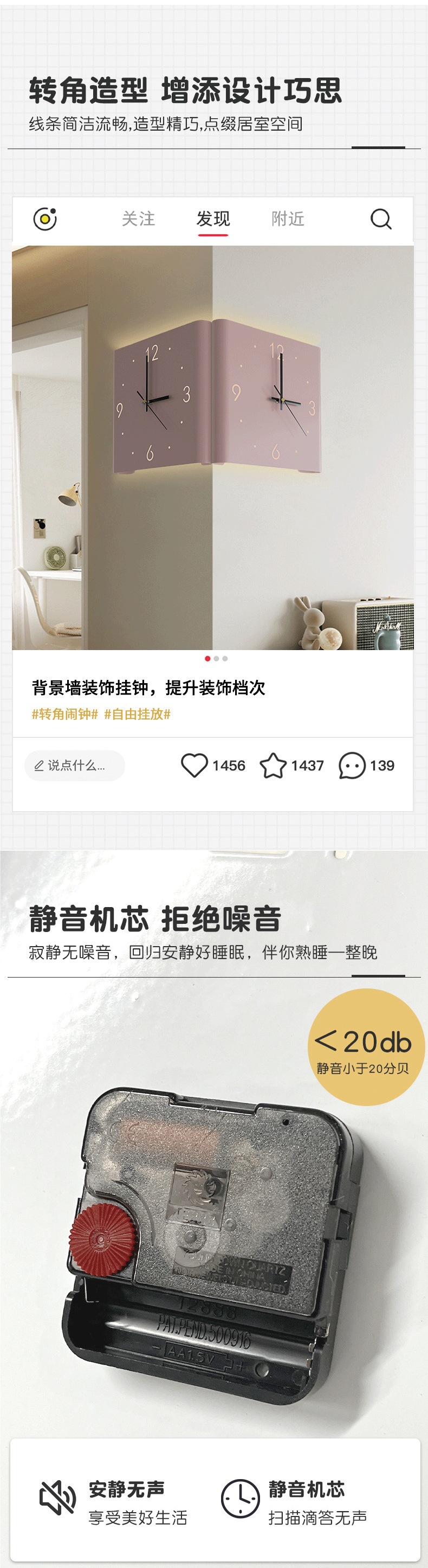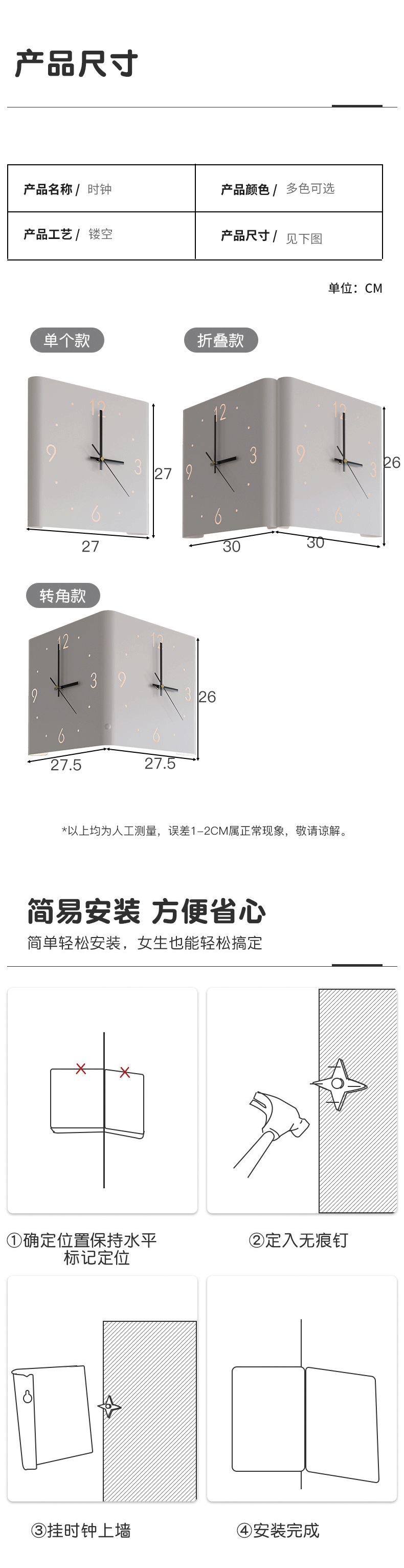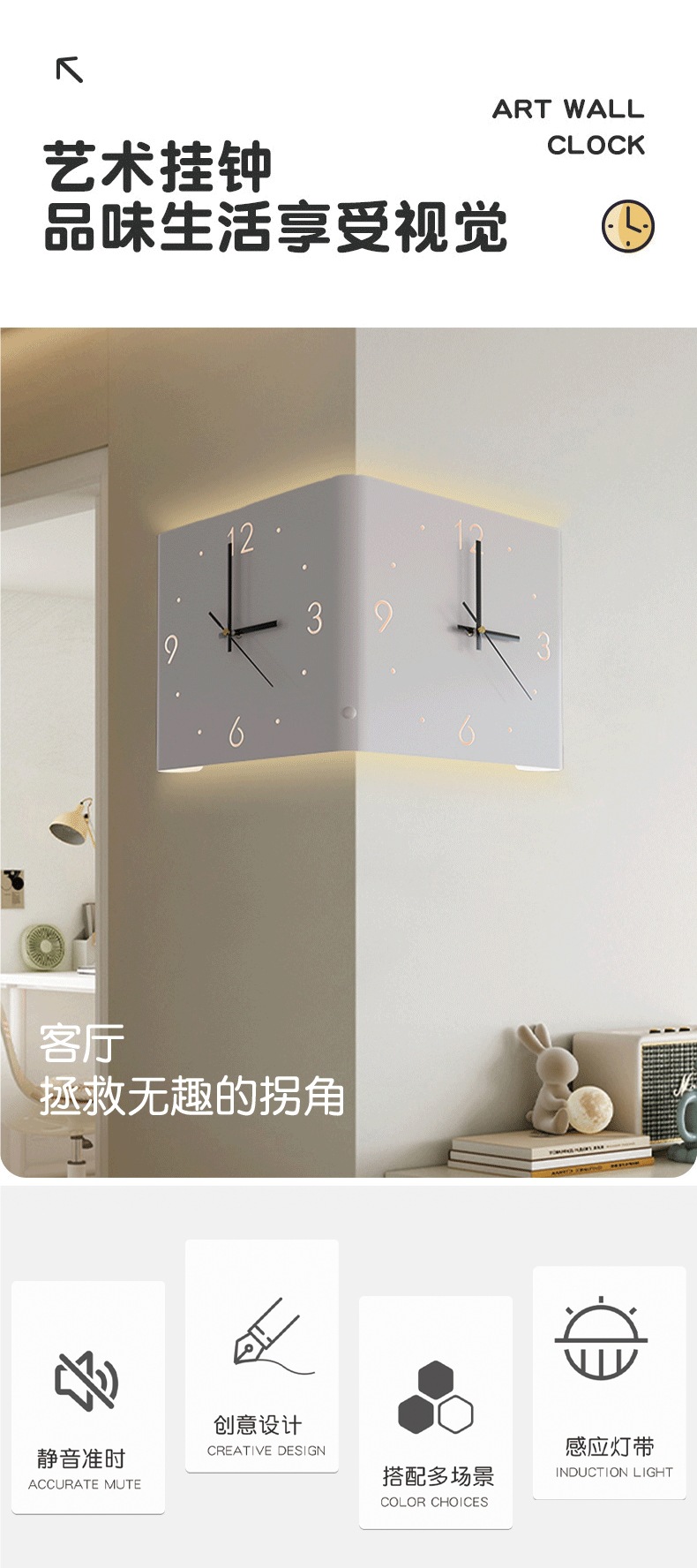 양면 코너 벽 시계 현대 거실 개인화 된 간단한 창조적 인 펀치없는 침묵하는 코너 시계 장식 벽 교수형스토어 가기