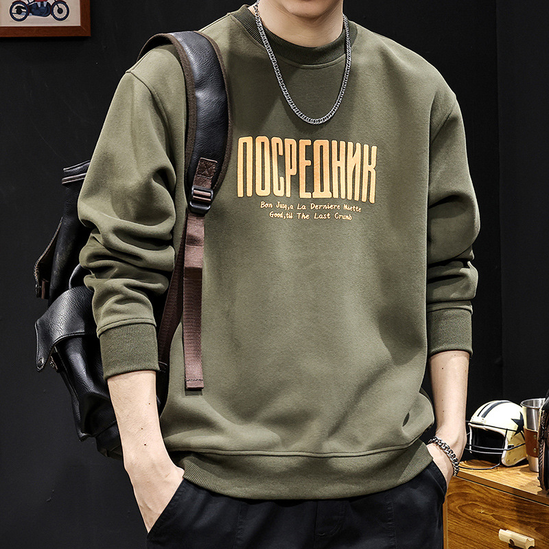 크루 넥 조수 브랜드 편지 인쇄 스웨터 남성 2025 새로운 무거운 미국 남성 플러스 사이즈 남성복 봄 도매스토어 가기