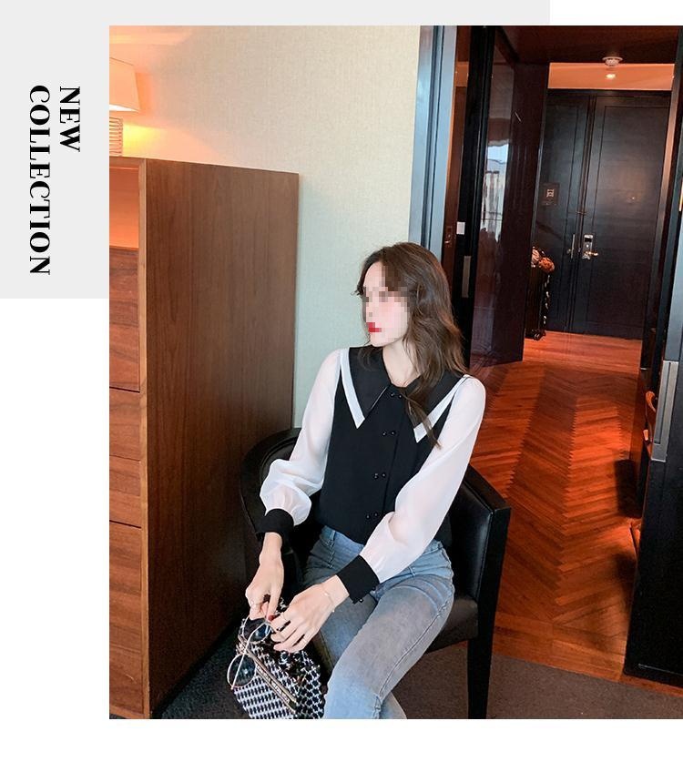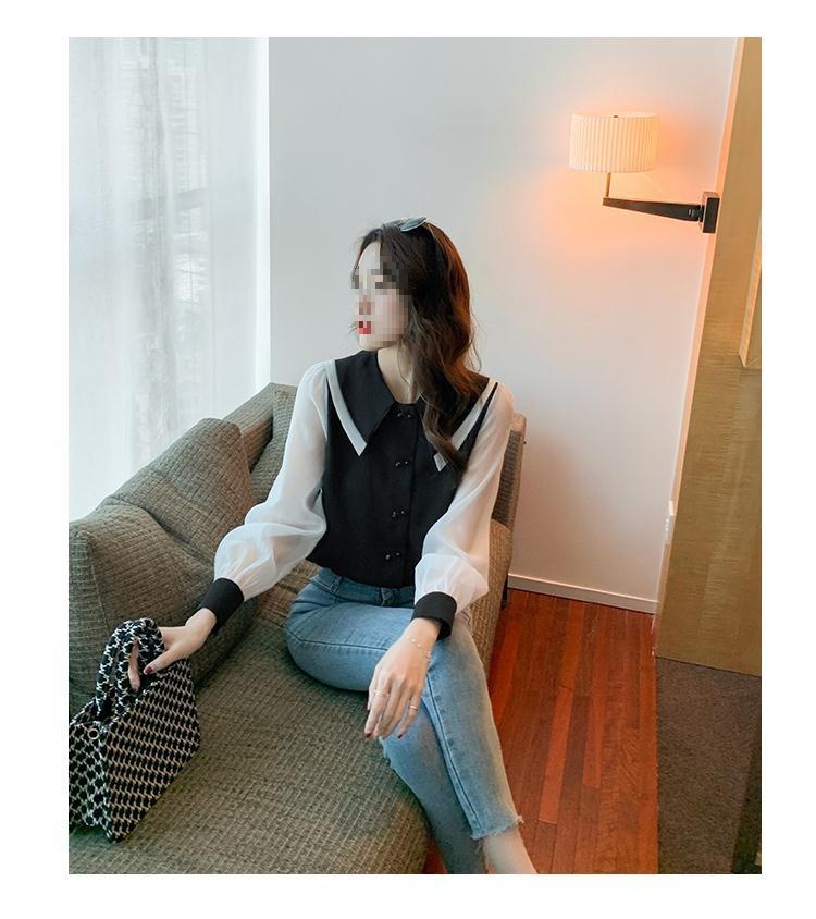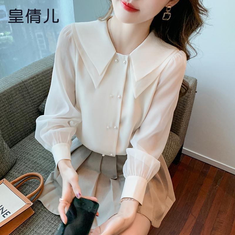 시폰 셔츠 여성 긴팔 가을 새 도착 한국 스타일 우아한 인형 칼라 탑 올 매치 디자인 센스 셔츠스토어 가기