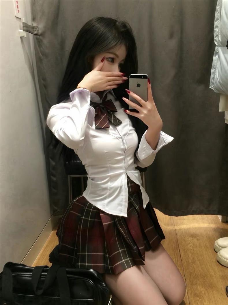 • 정장/긴팔 셔츠 + 나비넥타이 + 베고니아 레드 체크 스커트