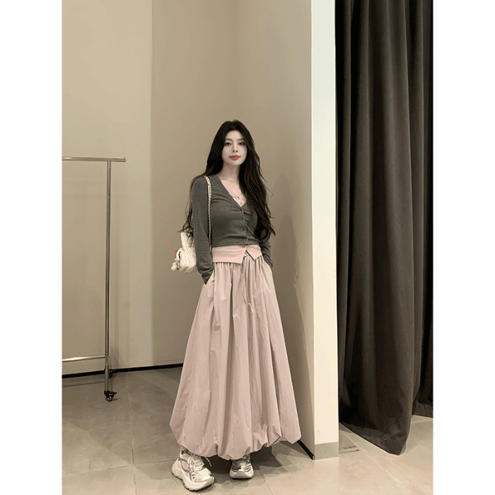 달콤한 푹신한 꽃 원피스 2025 여름 틈새 디자인 높은 허리 느슨한 슬리밍 스커트 A 라인 랜턴 원피스