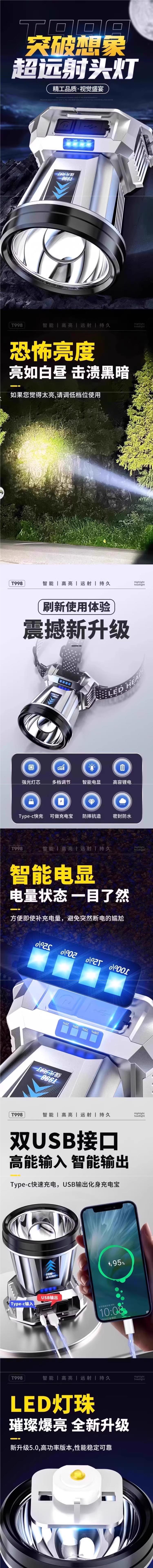 • 플래그십 버전은 백색광 99800W, 배터리 수명 800시간, 듀얼 리튬 배터리 + 스마트 전자 디스플레이를 감지할 수 있으며 휴대폰 충전도 가능합니다.