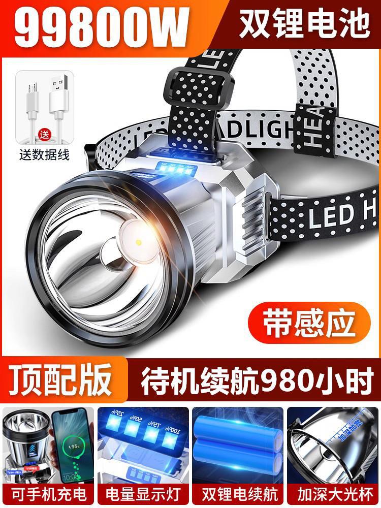 헤드 램프 강한 빛 충전 슈퍼 밝은 머리 장착 조명 슈퍼 긴 내구성 야외 야간 낚시 광부의 램프 작은 손전등스토어 가기