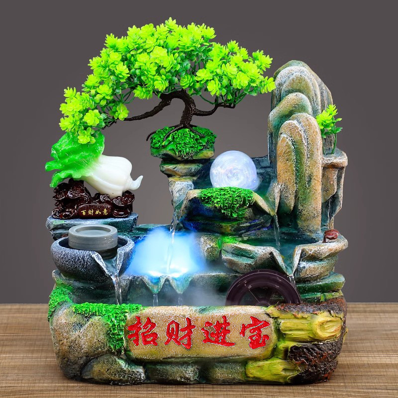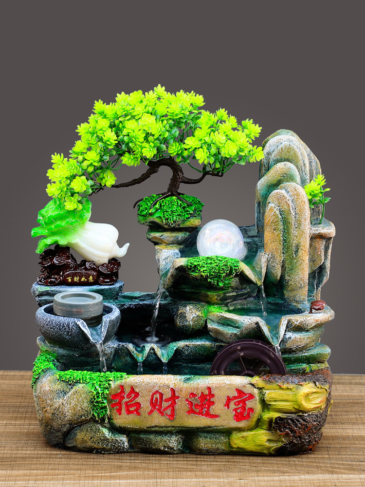 보물 풍수 바퀴에 새로운 재산을 만드는 창조적 인 선물을 여는 사무실 바위 데스크탑 장식 흐르는 물 장식품 가습스토어 가기