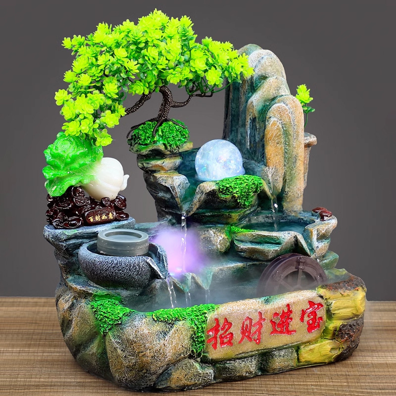 보물 풍수 바퀴에 새로운 재산을 만드는 창조적 인 선물을 여는 사무실 바위 데스크탑 장식 흐르는 물 장식품 가습
