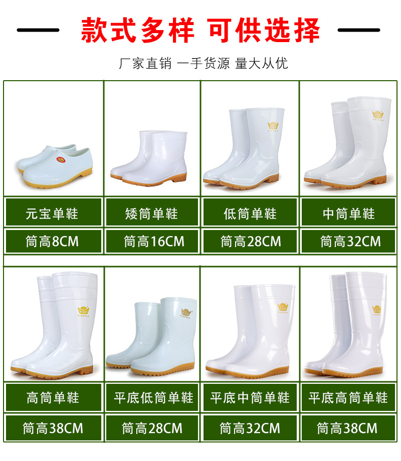 화이트 비 부츠 주방 수생 식품 공장 노동 보호 위생 장화 화학 작업장 미끄럼 방지 산 및 알칼리 저항하는 낮은 중간 높은 튜브스토어 가기