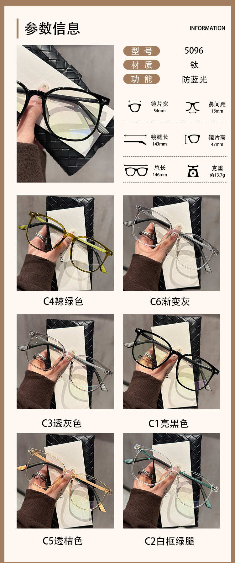 5096 상자 이른 봄 레저 티타늄 프레임 남성과 여성의 근시 안경 도매 학생 회색 평면 거울을 통해 모든 경기 간단한 바람