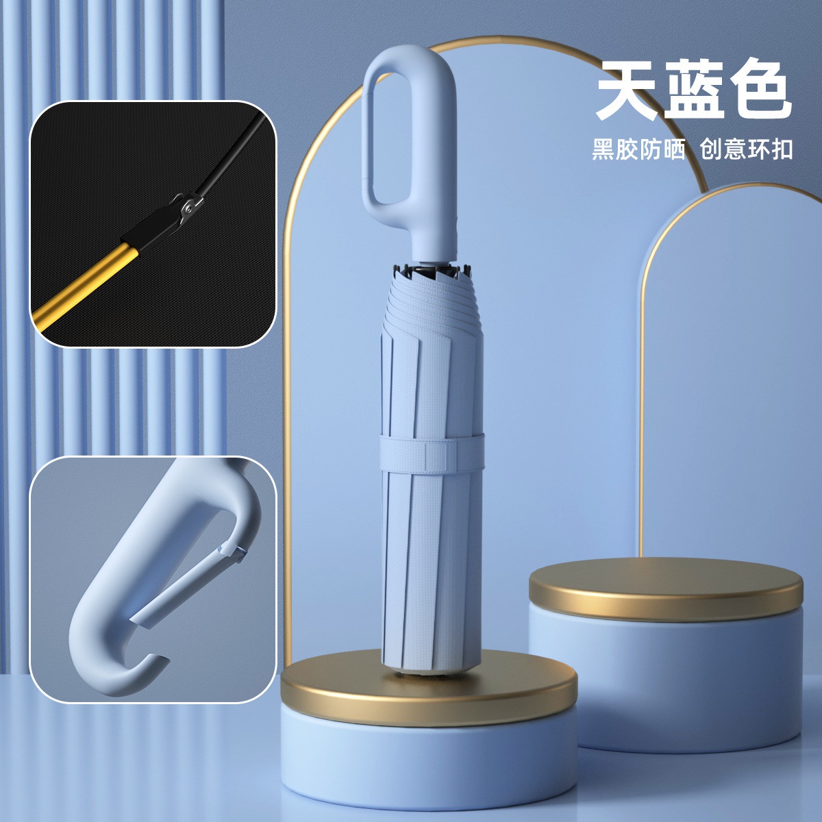 완전 자동 링 버클 우산 검은 고무 비 우산 여성 태양 보호 UV 보호 햇살 우산 두 배 접는 우산 남성스토어 가기