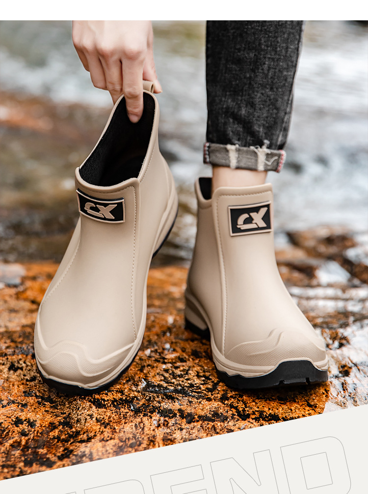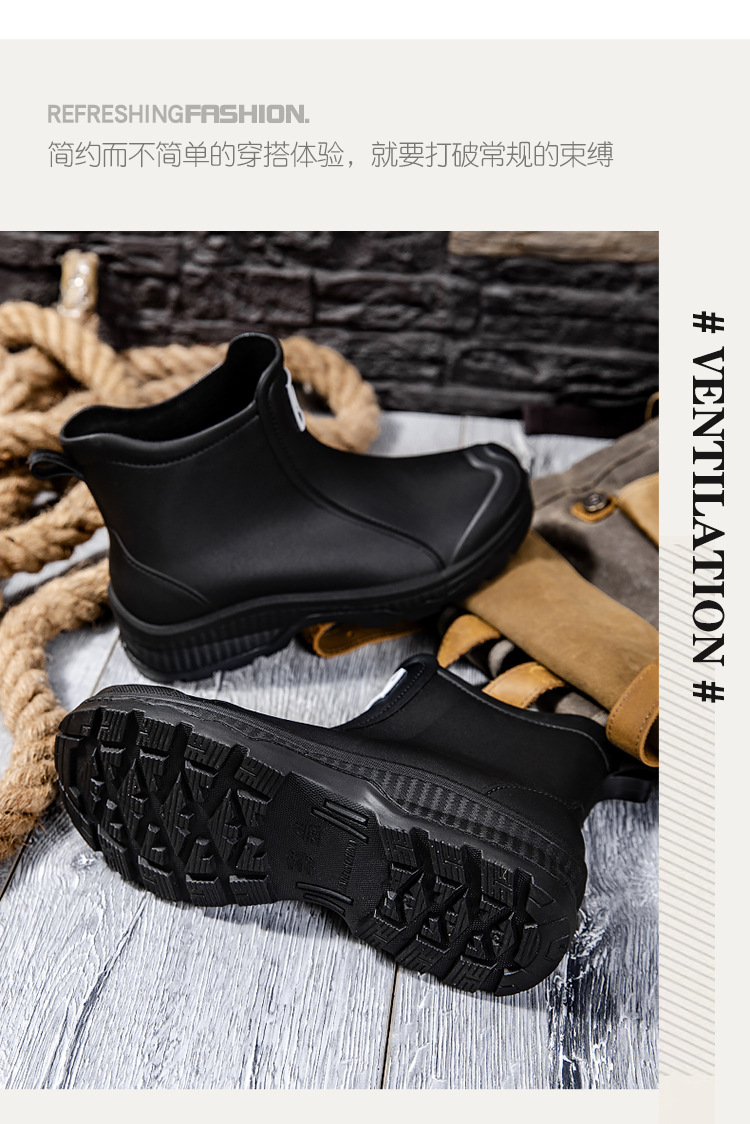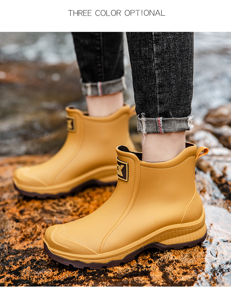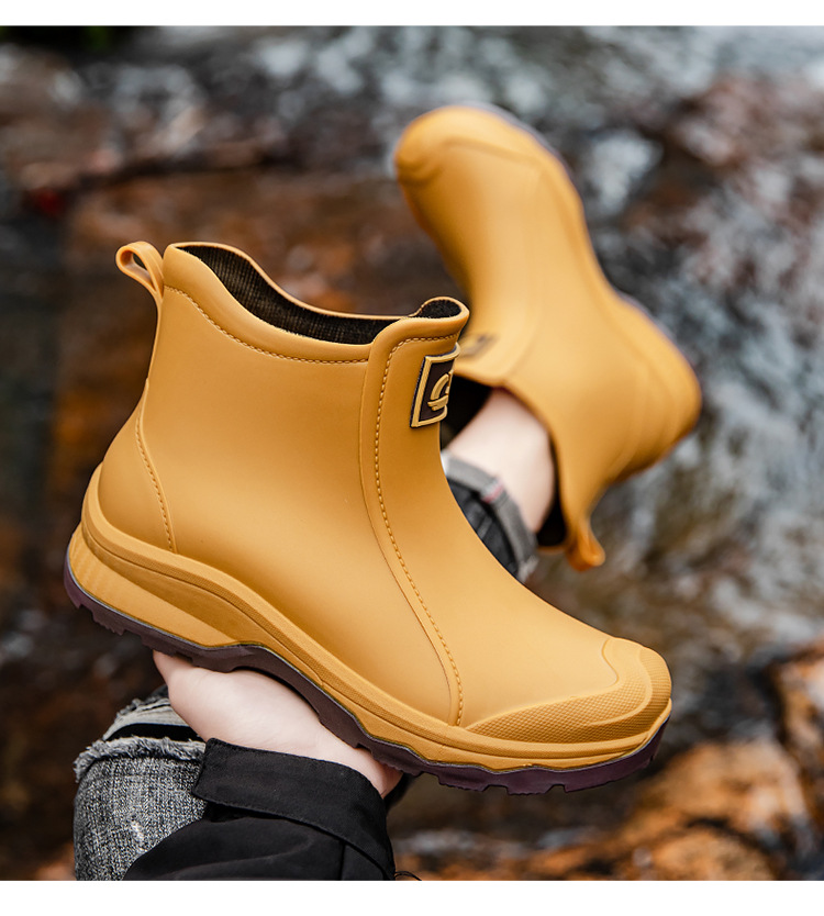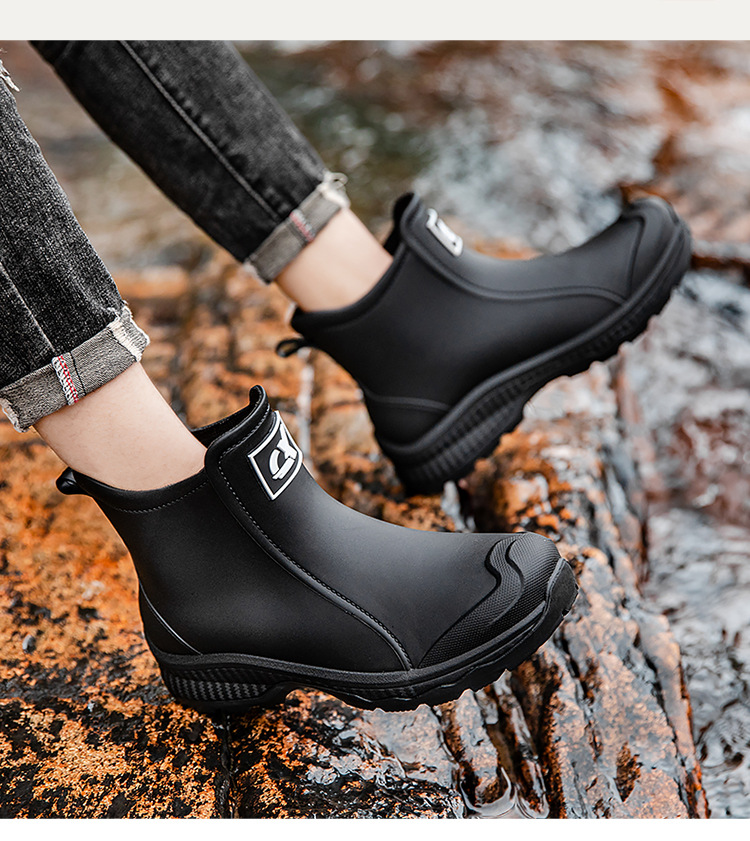 국경 간 남성 장화 야외 미끄럼 방지 고무 신발 내마모성 짧은 방수 신발 장화 남성 짧은 튜브 워터 부츠 사계절