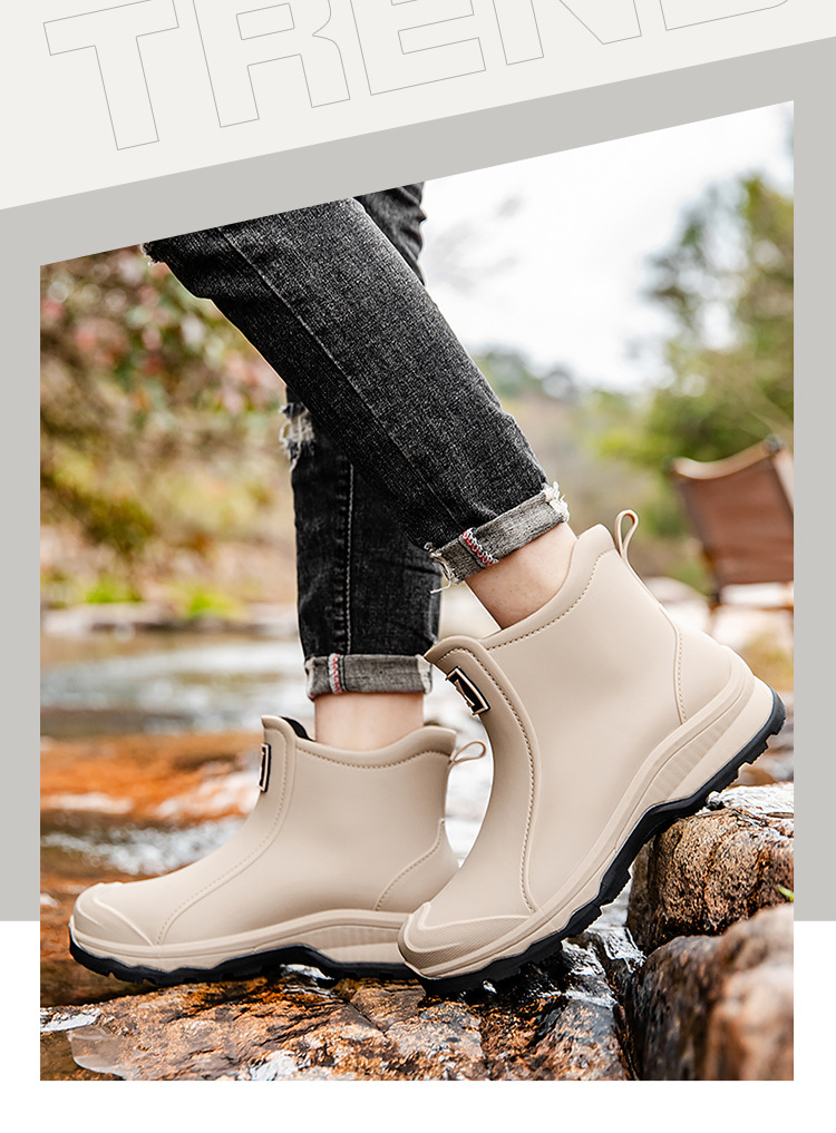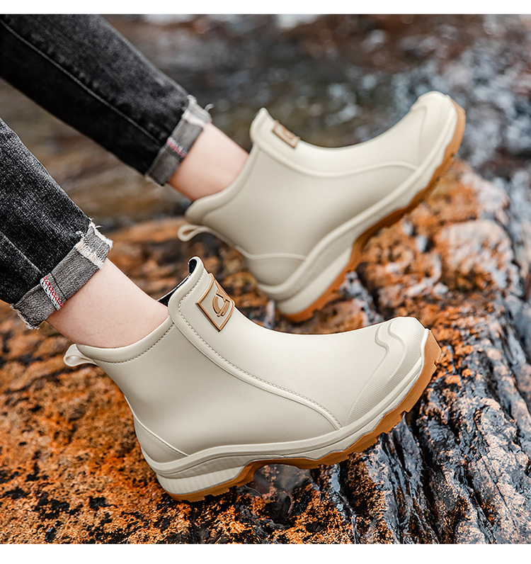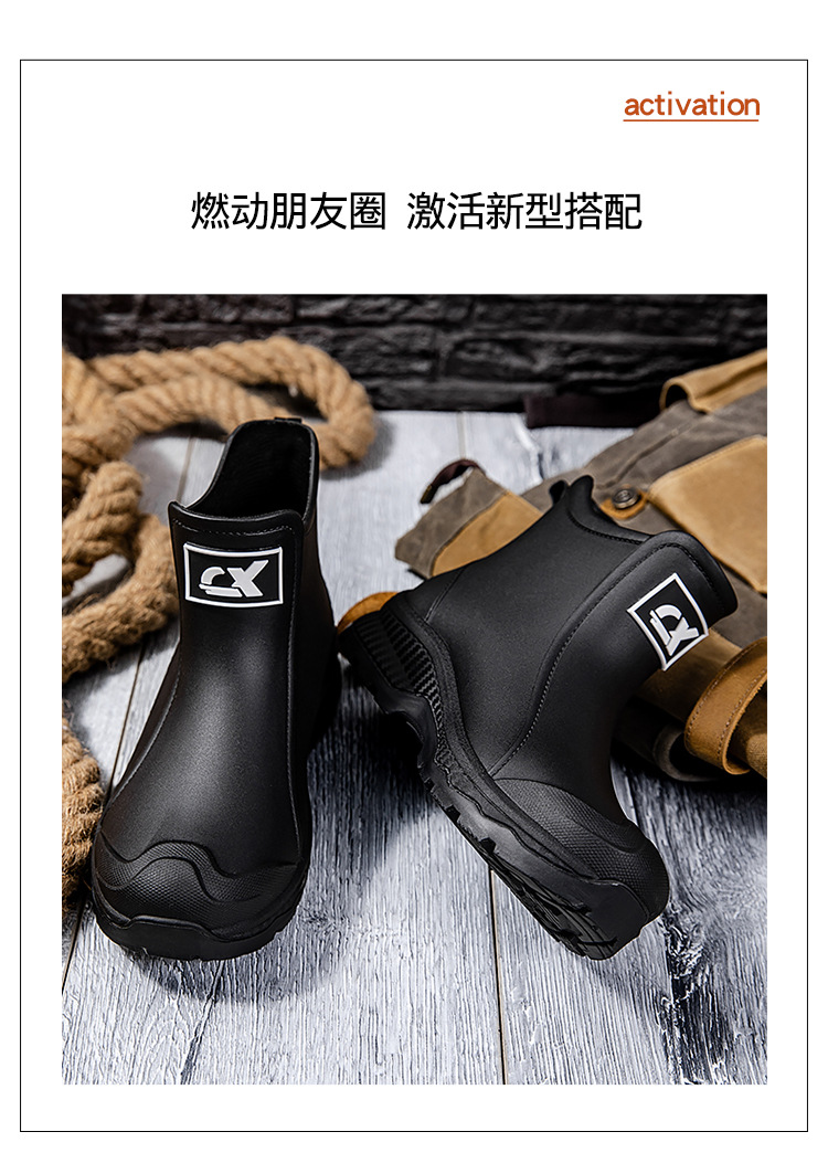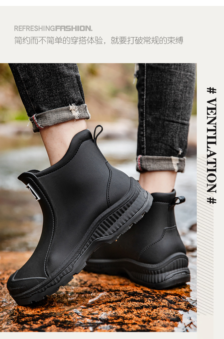 국경 간 남성 장화 야외 미끄럼 방지 고무 신발 내마모성 짧은 방수 신발 장화 남성 짧은 튜브 워터 부츠 사계절