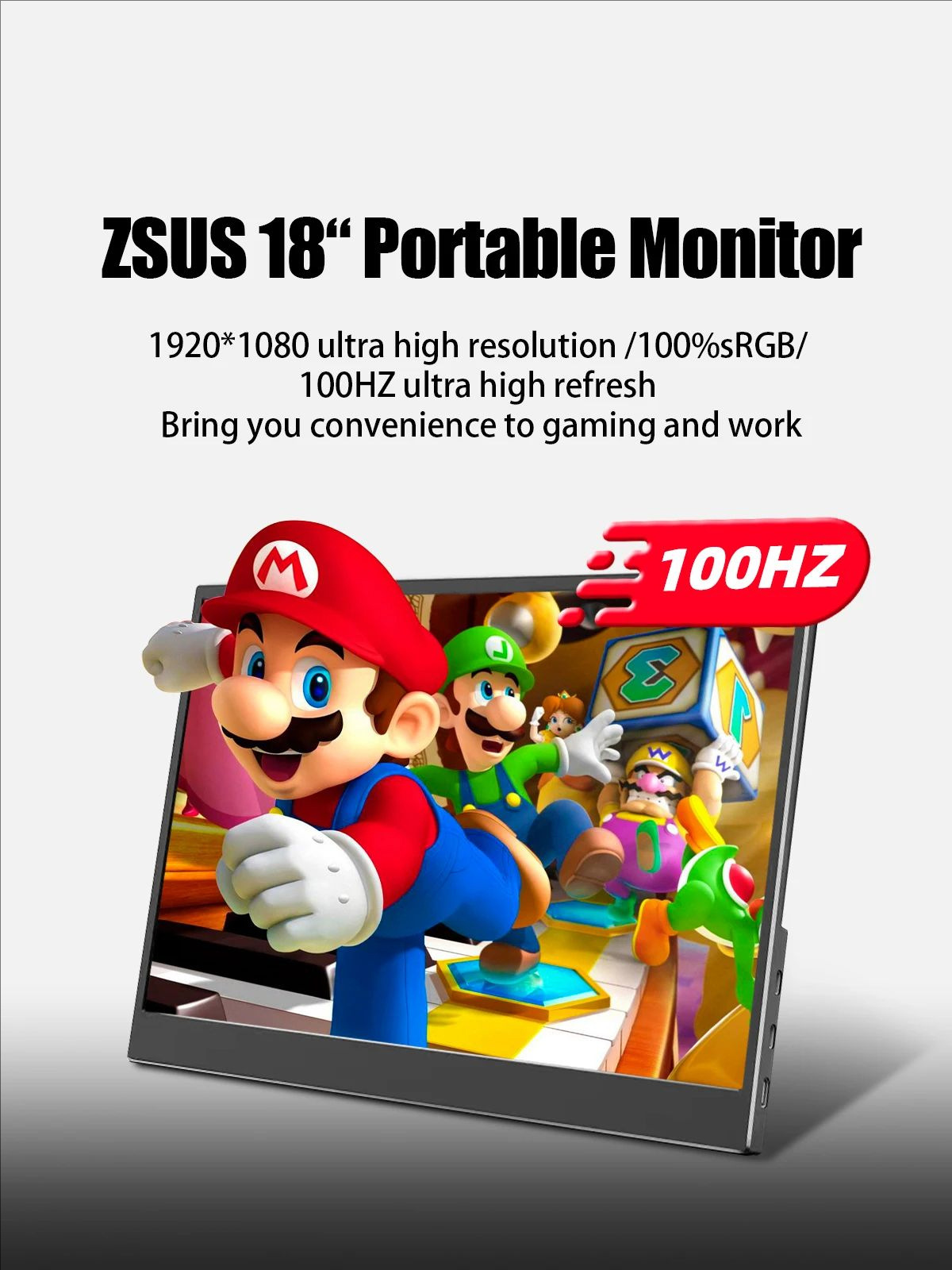 18inch 1080p 100hz 휴대용 모니터 경량 100%sRGB 디스플레이