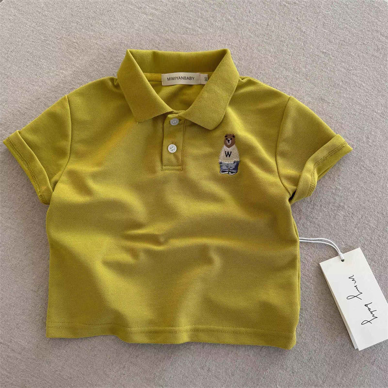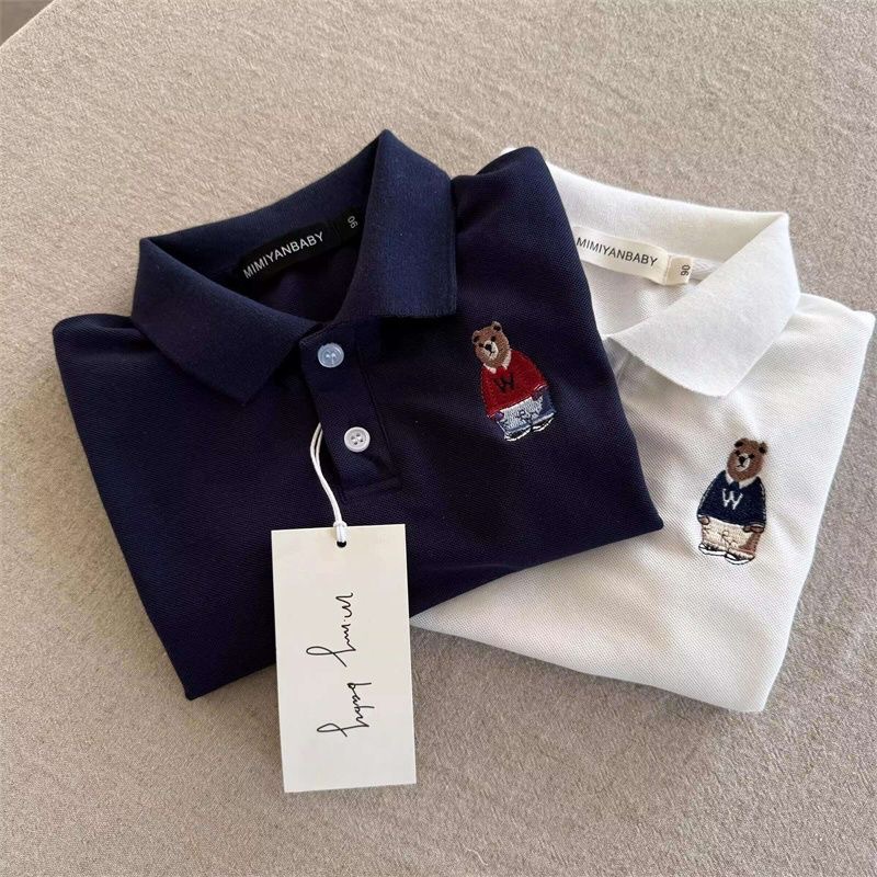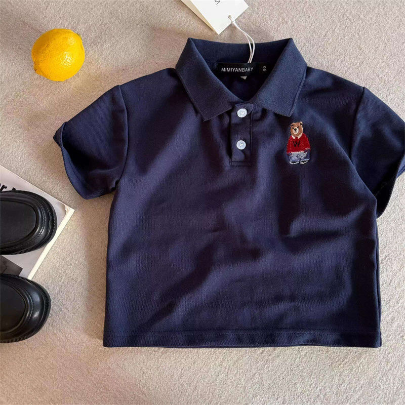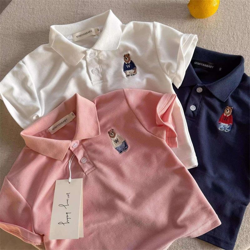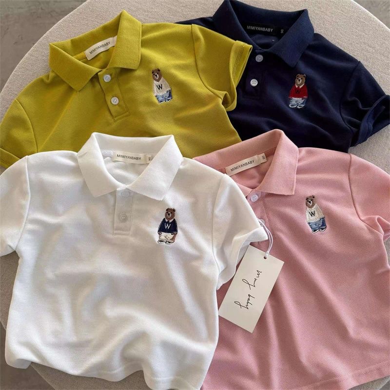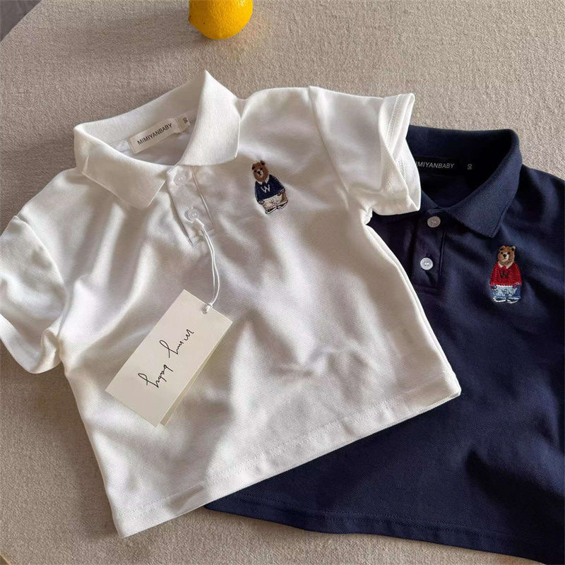 100 면 어린이 폴로 셔츠 짧은 소매 2025 여름 새로운 소년과 소녀 작은 곰 아기 탑 폴로 칼라 티셔츠