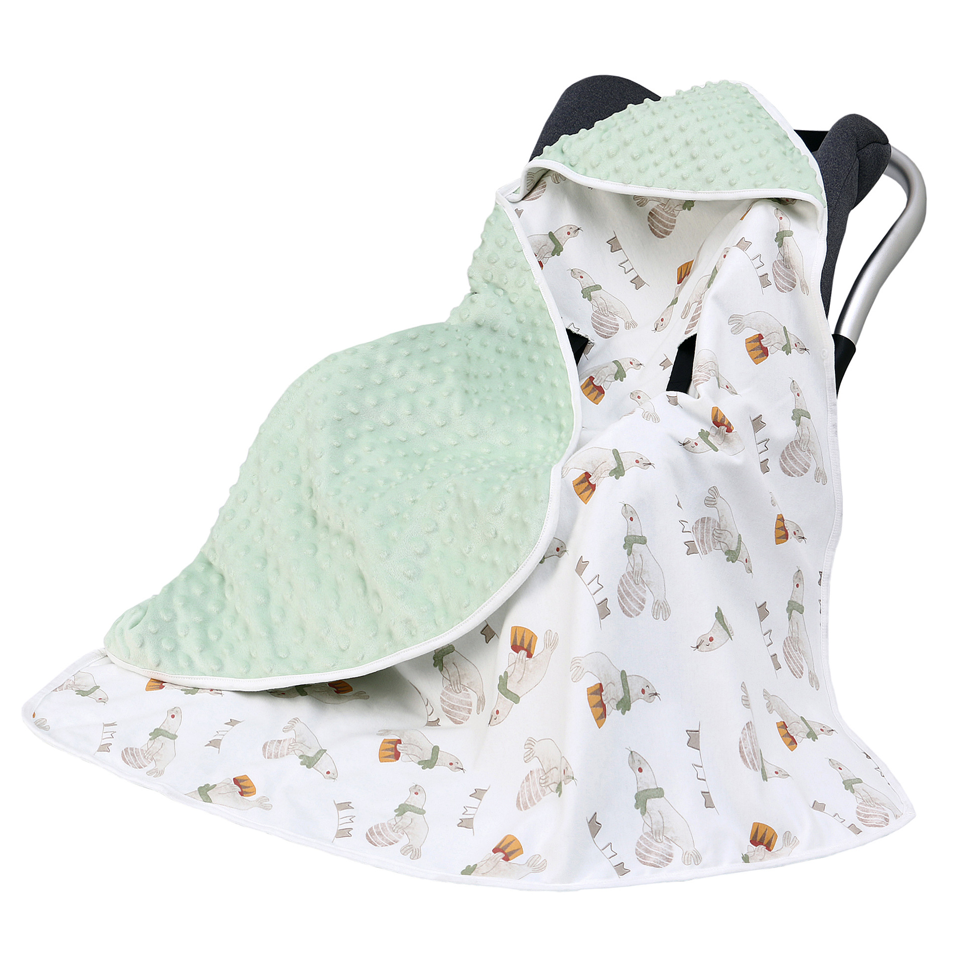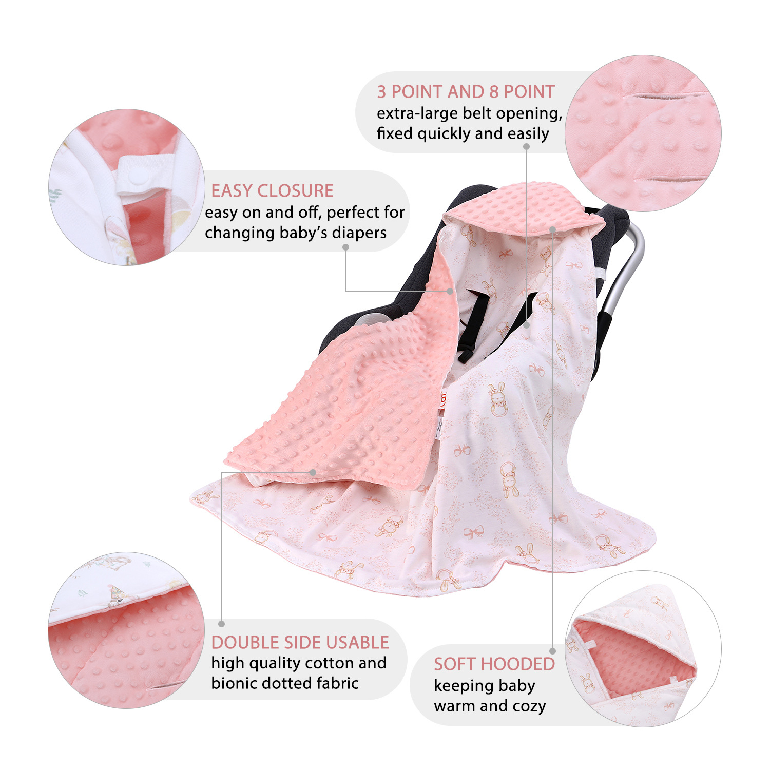 正反面都可以使用都一款婴儿包被,三角帽设计,室内室外均可使用,特色:有锁孔设计,在婴儿车或者安全座椅都可以固定,有双层以及夹棉2种款式均可挑选,非常柔软舒适