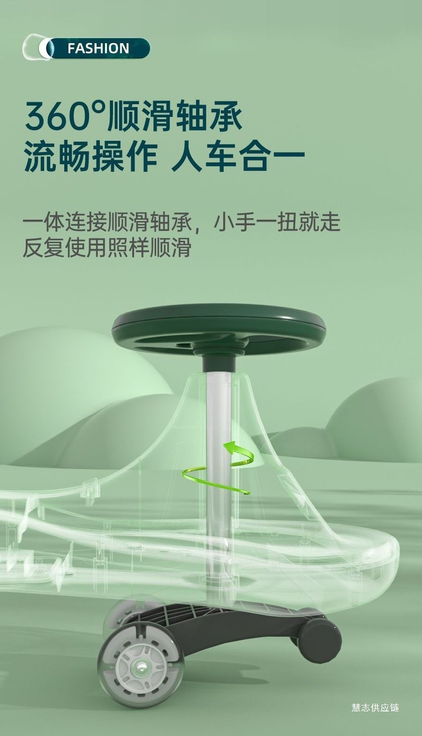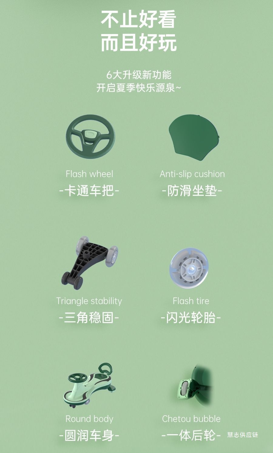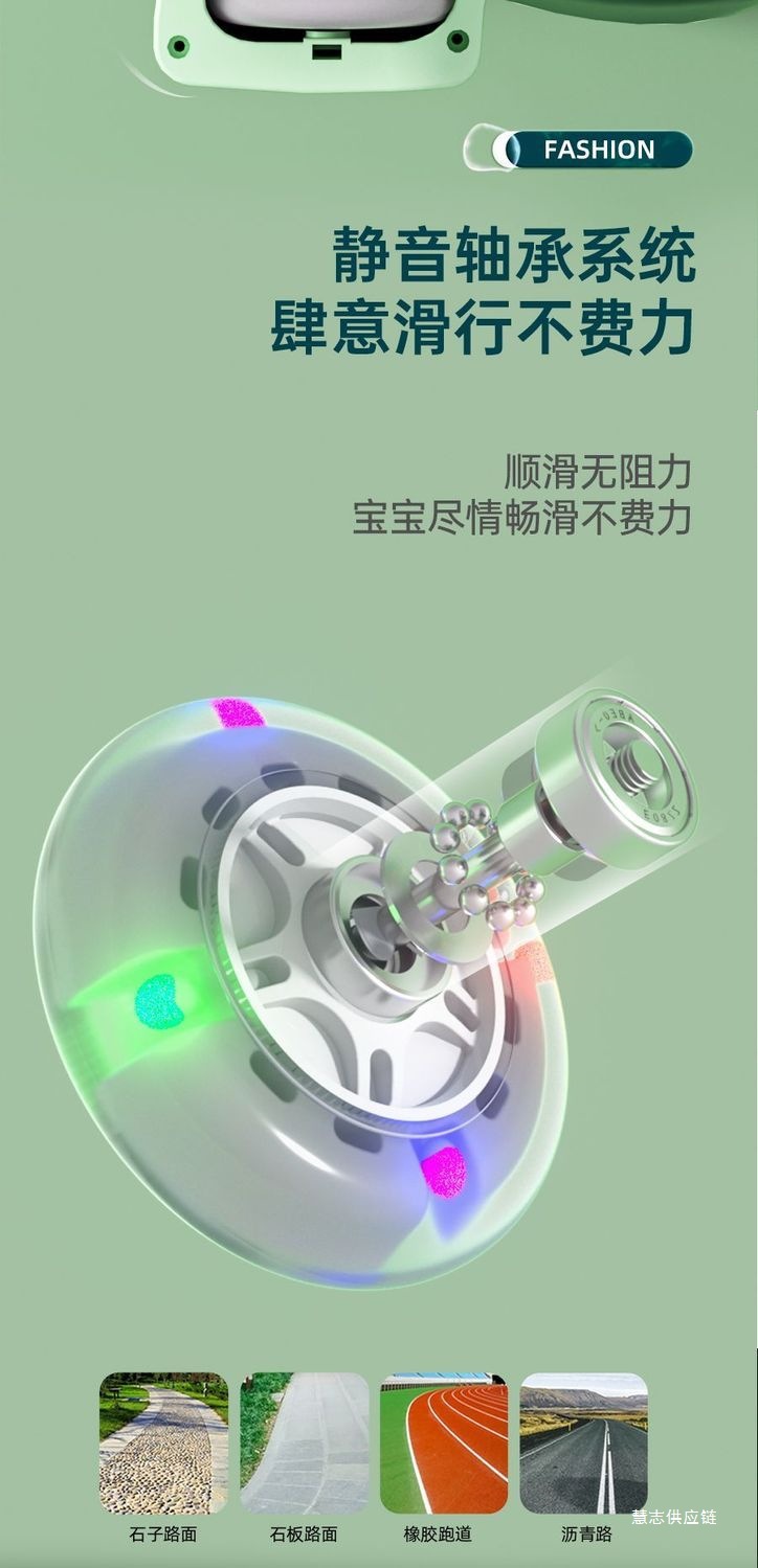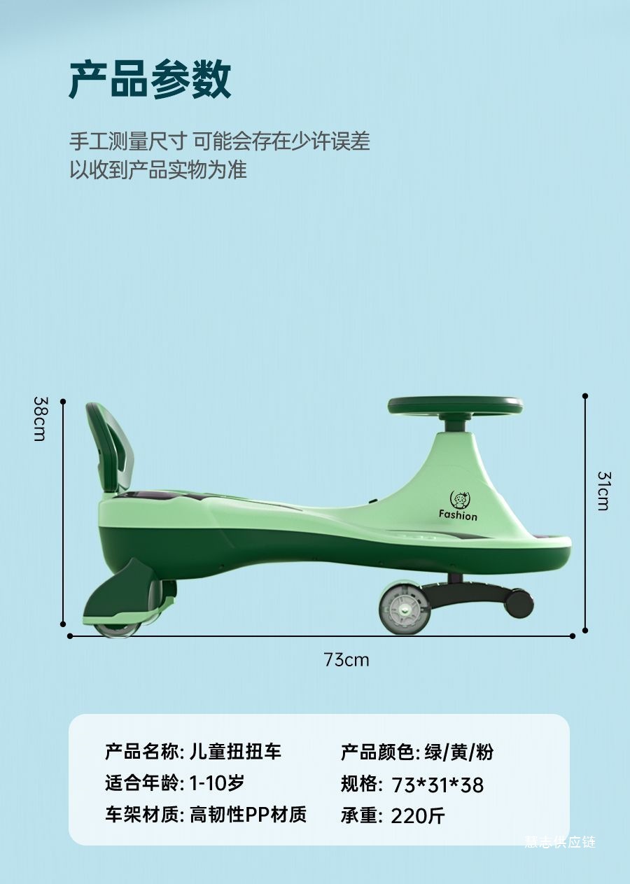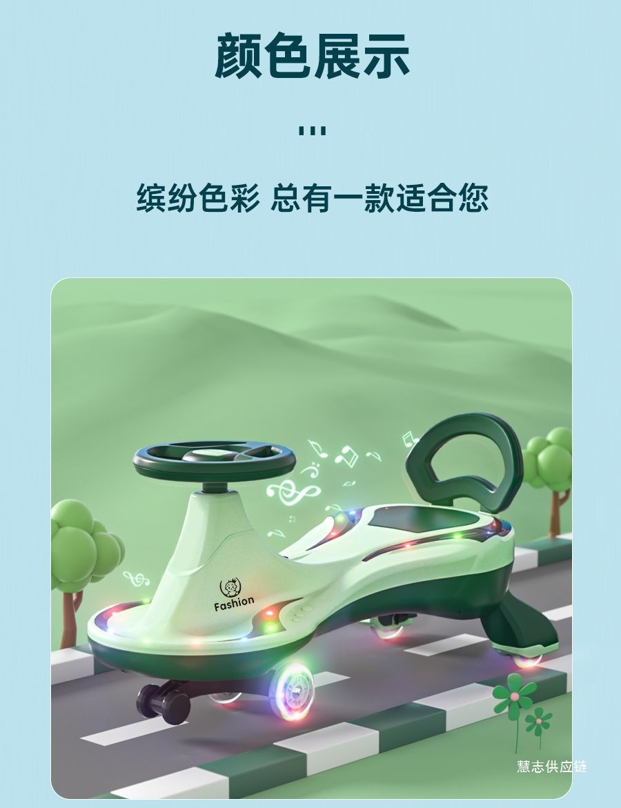 • 일반바퀴 기본 + 음악 및 조명 + 등받이 + 전복방지 - 더블 레이어 바디 + 선물가방 (대형 녹색)