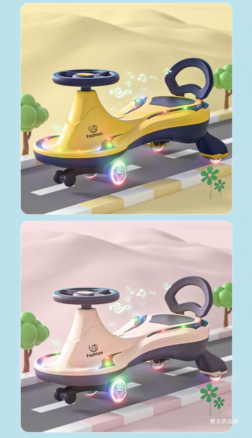 • 일반바퀴 기본 + 음악 및 조명 + 등받이 + 전복방지 - 더블 레이어 바디 + 선물가방 (대형 핑크)