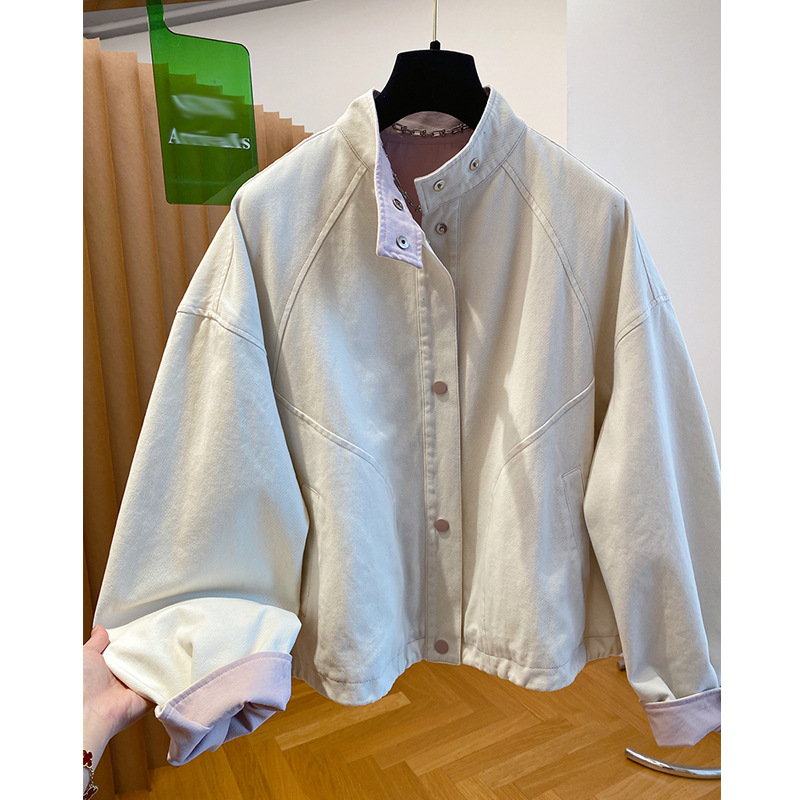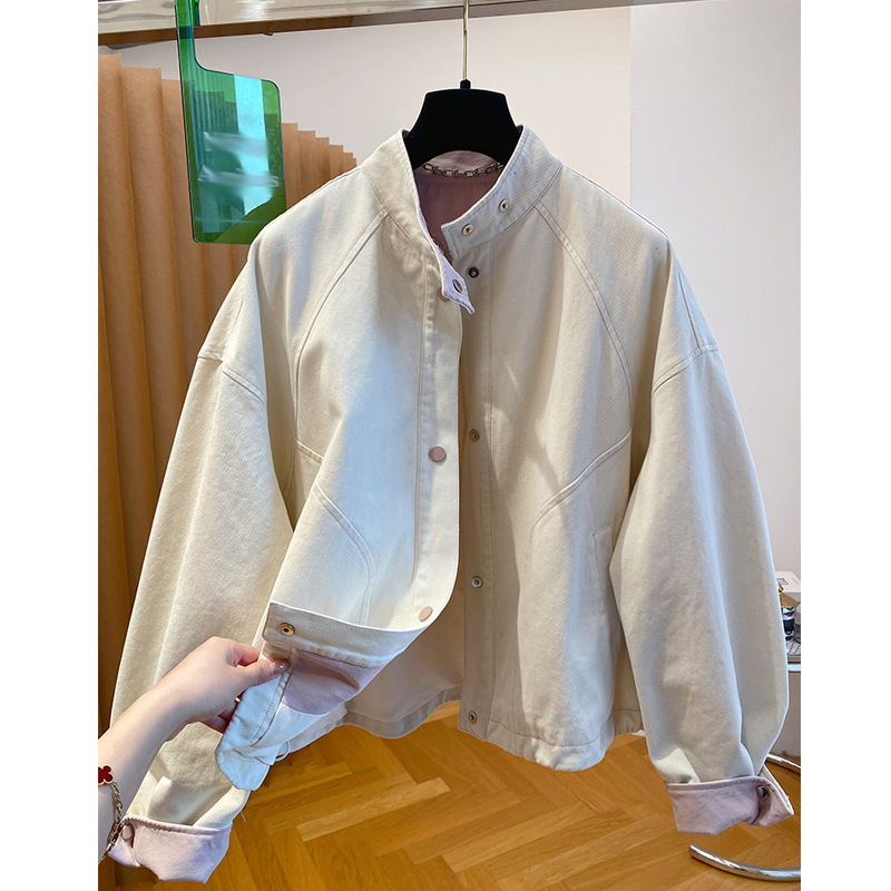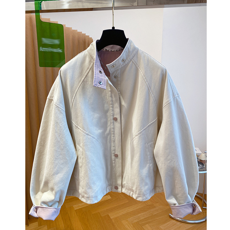 대조 컬러 캐주얼 오버 코트 여성 봄과 가을 2025 새로운 홍콩 스타일 캐주얼 인기 짧은 재킷 탑 여성 의류스토어 가기