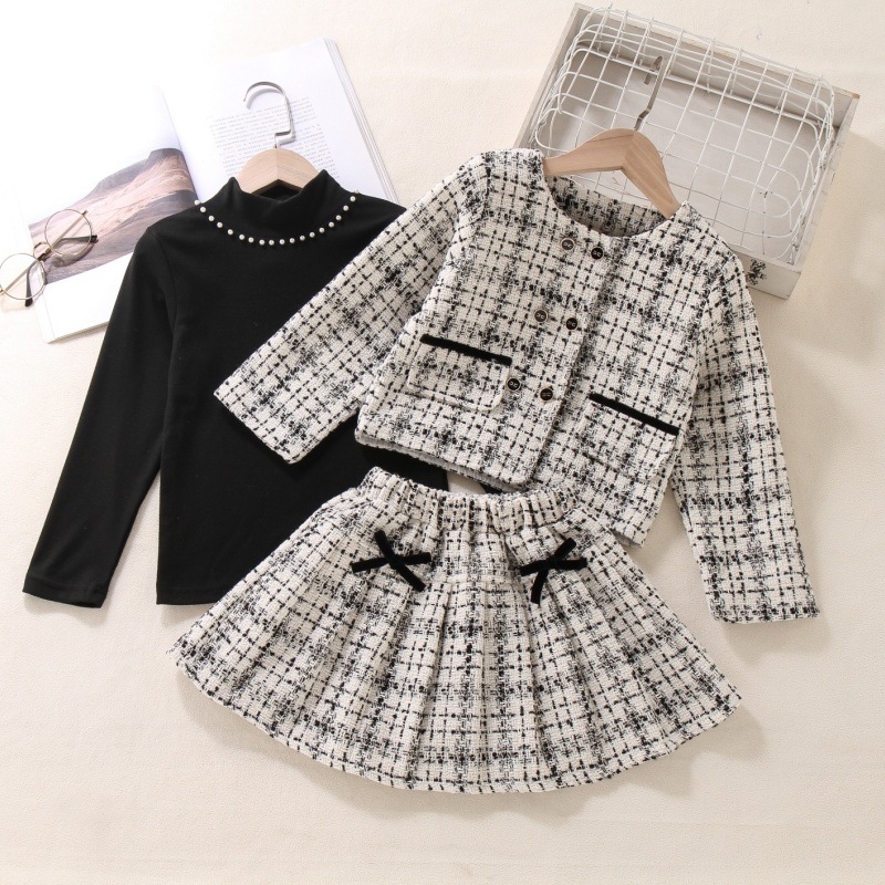 소녀 원피스 2025 새로운 가을 서양식 어린이 샤넬 스타일 코트 봄과 가을 큰 어린이 가을 세트 치마스토어 가기