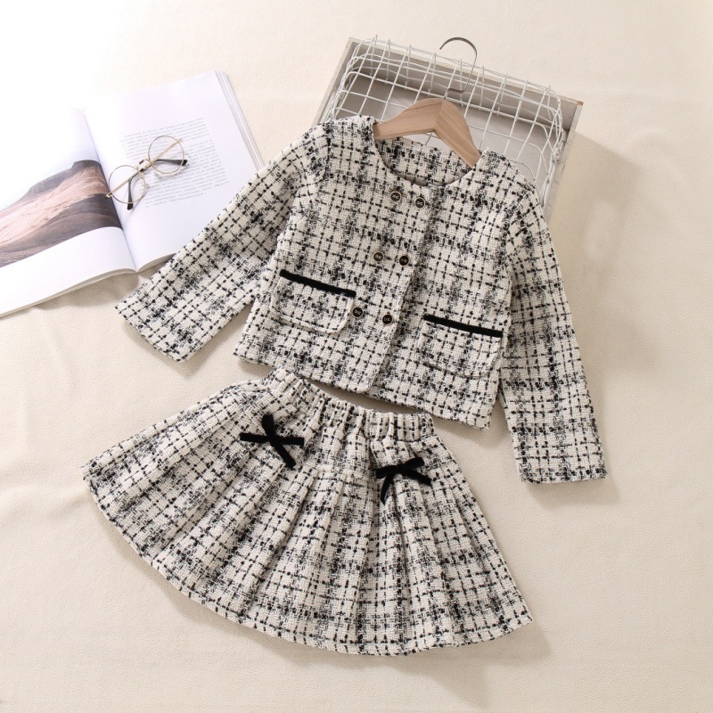 소녀 원피스 2025 새로운 가을 서양식 어린이 샤넬 스타일 코트 봄과 가을 큰 어린이 가을 세트 치마