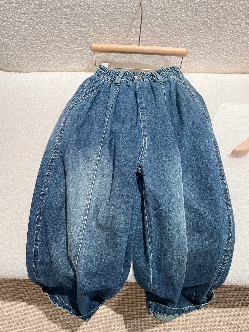 2025년 초가을 유행하는 독특한 아동용 편안하고 부드러운 배색 남녀공용 얇고 부드러운 순면 데님 바지스토어 가기