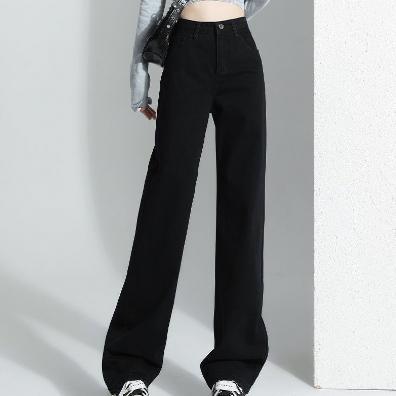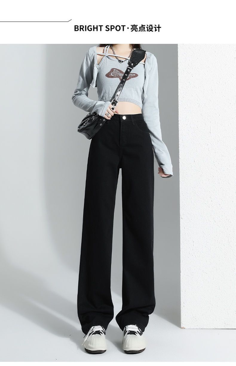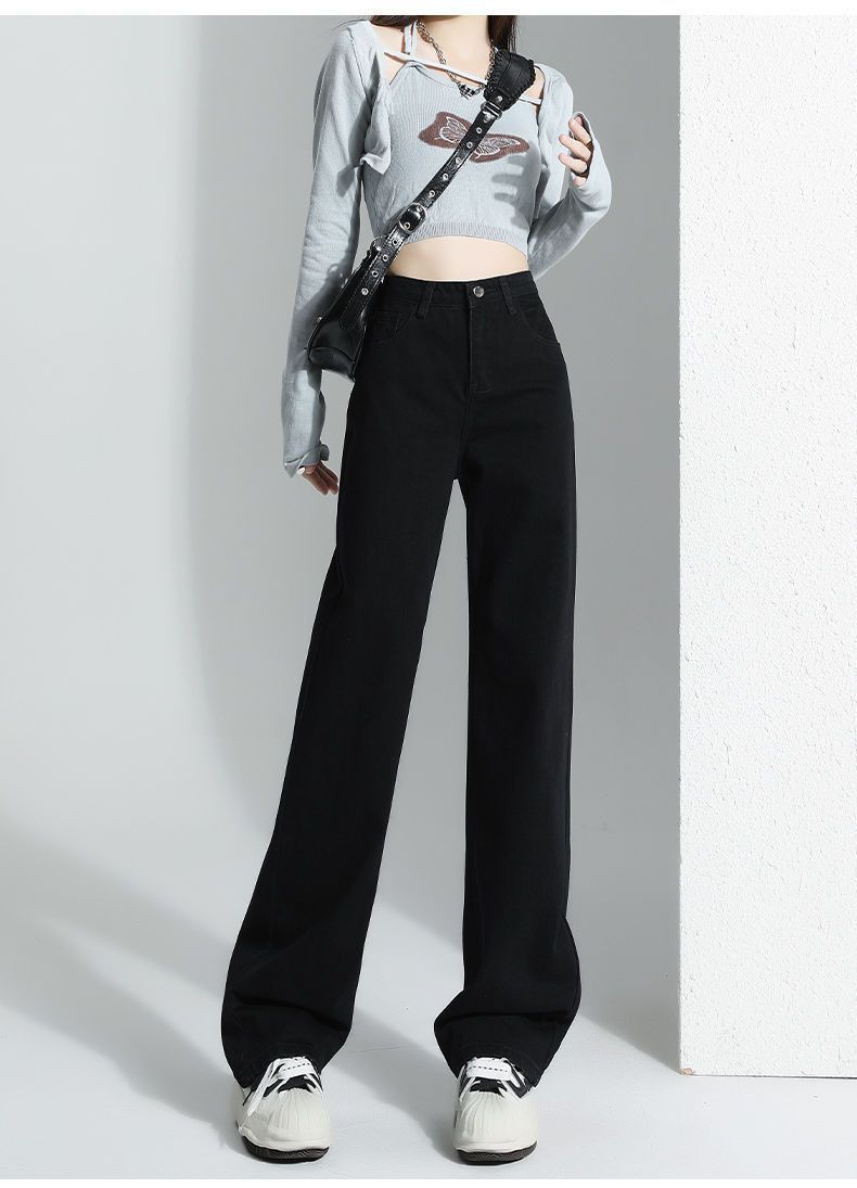 높은 허리 넓은 다리 청바지 여성의 2024 봄과 가을 좁은 버전 스트레이트 튜브 투약 키가 큰 슬림 룩 블랙 올 매치 바지스토어 가기