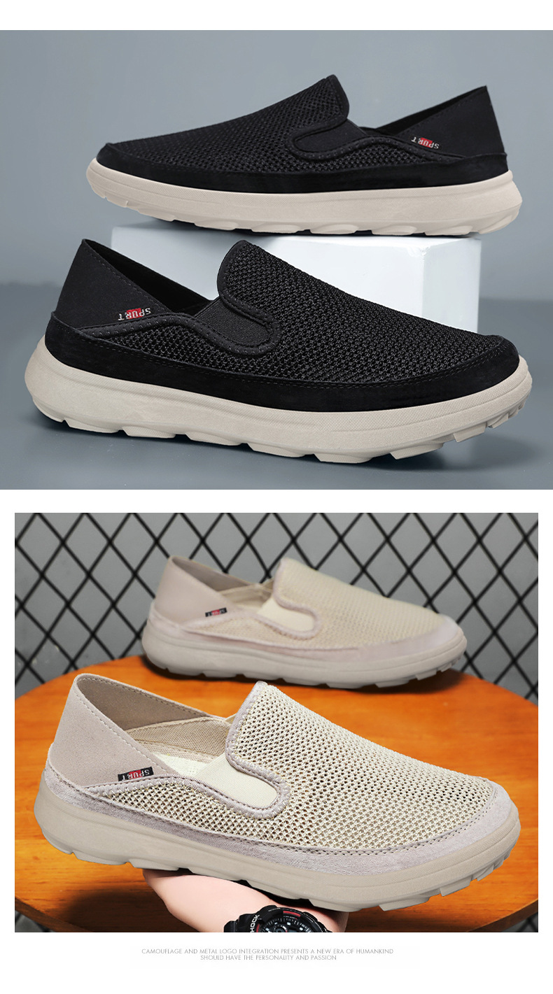 남성 봄 새로운 오래된 베이징 천 신발 플라이 짠 통기성 비 냄새 나는 발 캐주얼 소프트 솔 페달 신발 공장 도매스토어 가기