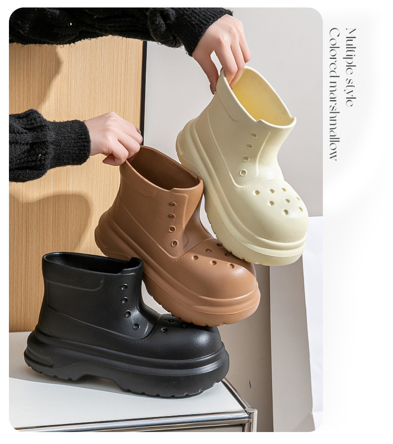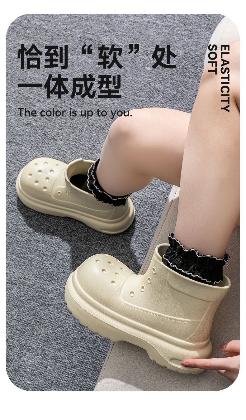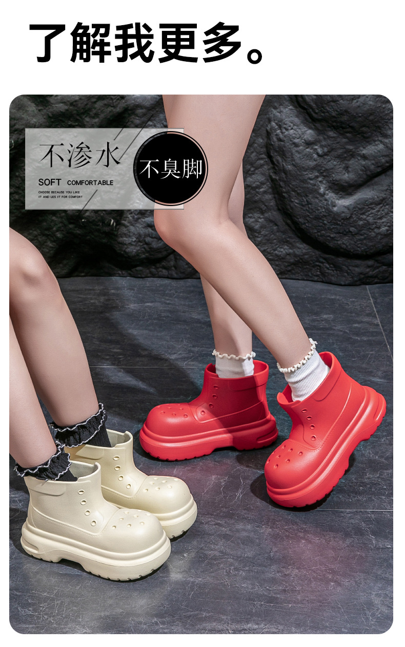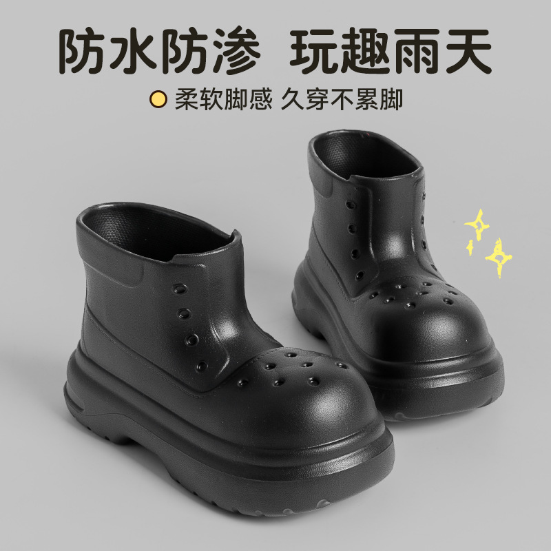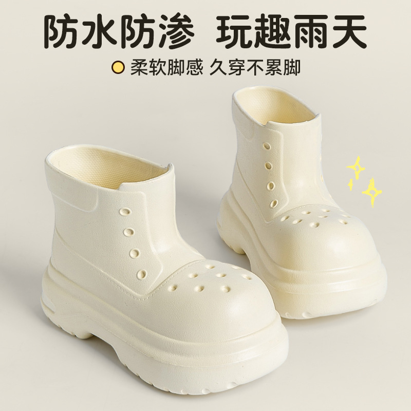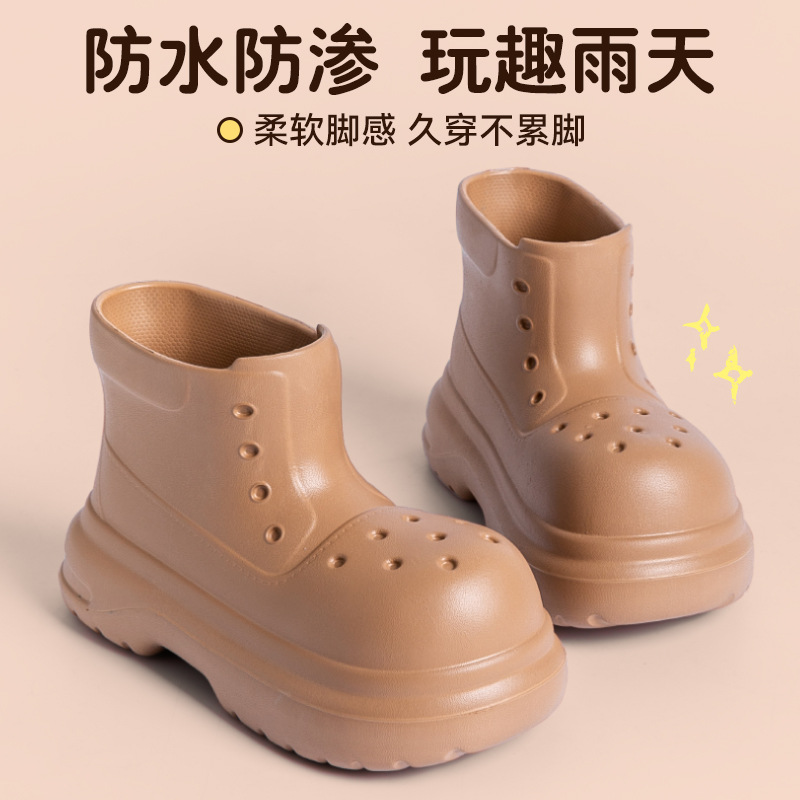 귀여운 두꺼운 바닥 부츠 여자 사계절 유니버설 야외 방수 미끄럼 방지 EVA 덕센스 올 매치 레인 부츠 여자 비 부츠스토어 가기