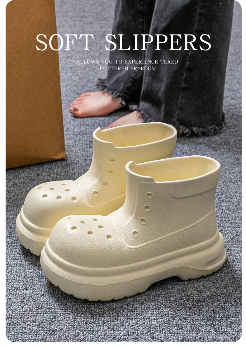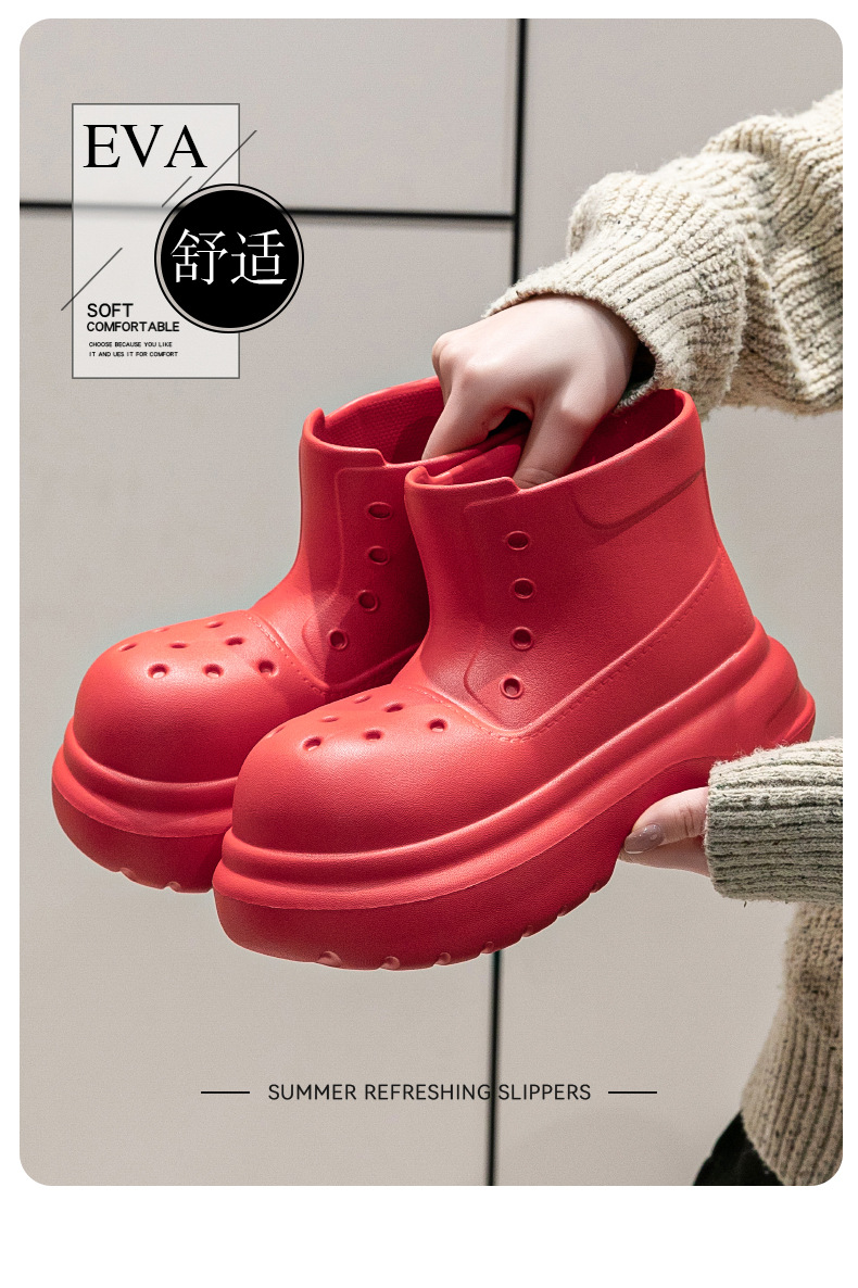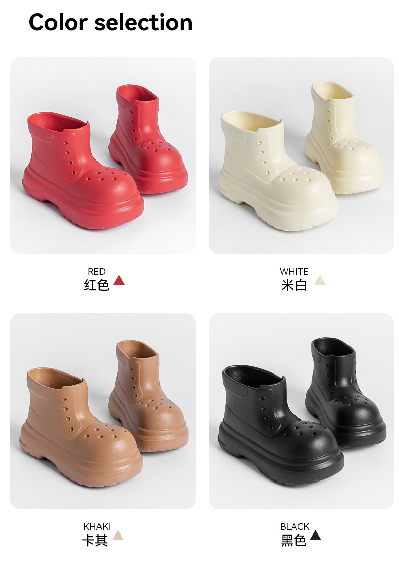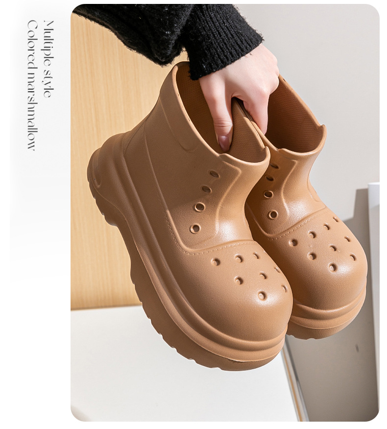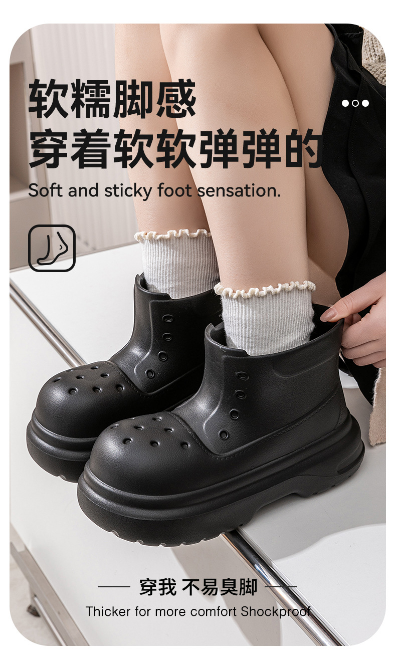 귀여운 두꺼운 바닥 부츠 여자 사계절 유니버설 야외 방수 미끄럼 방지 EVA 덕센스 올 매치 레인 부츠 여자 비 부츠스토어 가기