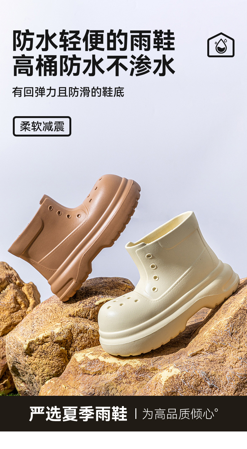 귀여운 두꺼운 바닥 부츠 여자 사계절 유니버설 야외 방수 미끄럼 방지 EVA 덕센스 올 매치 레인 부츠 여자 비 부츠