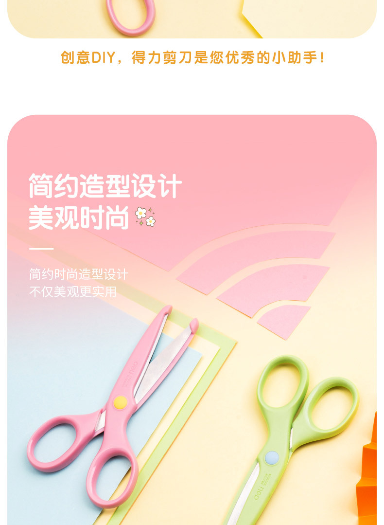 델리 6023 어린이 안전 가위 귀여운 수공예 종이 자르기 가위 학생 미술 창의적 DIY 사진 앨범 가위