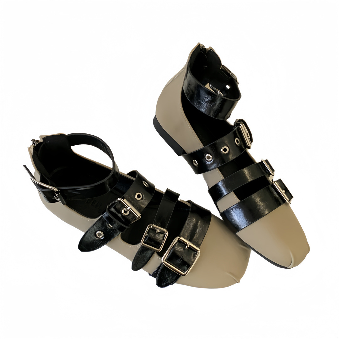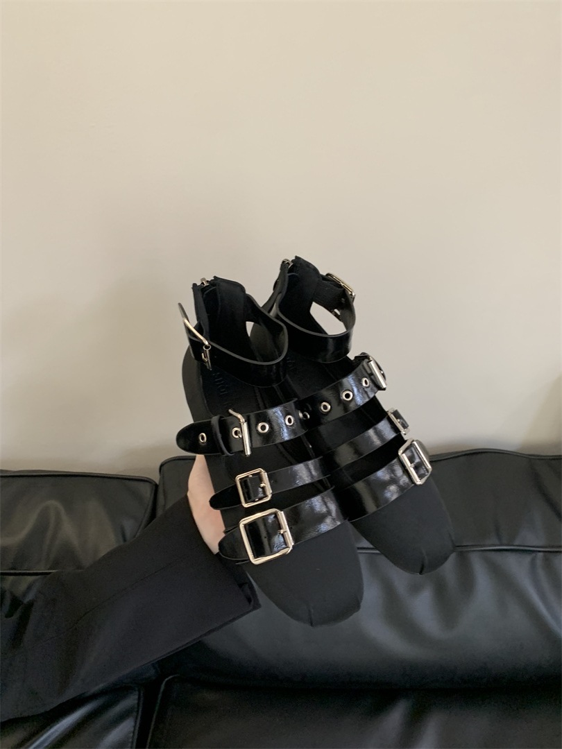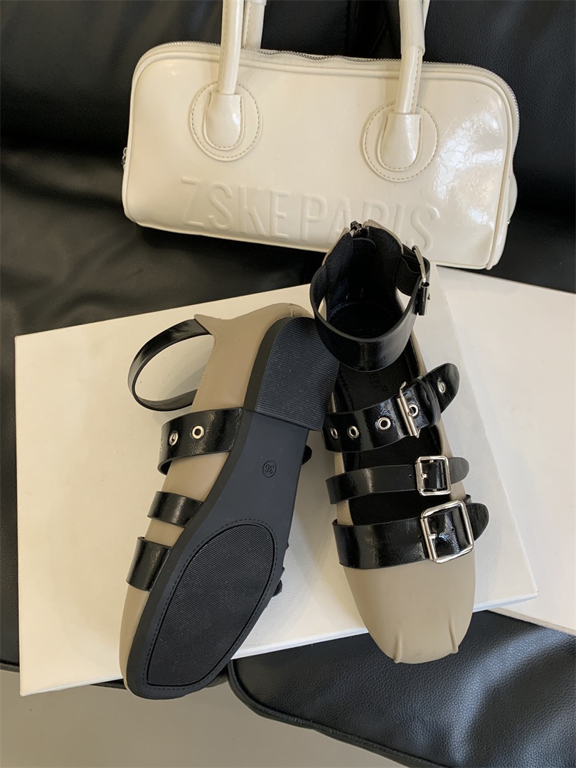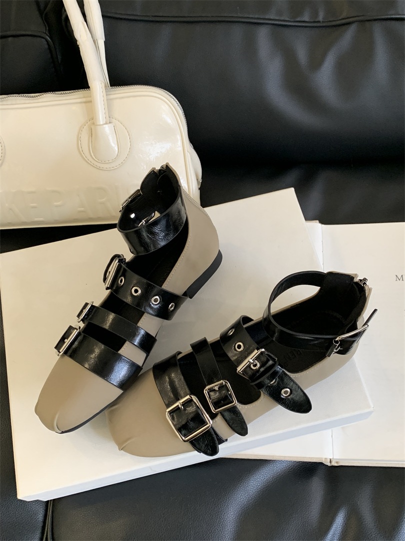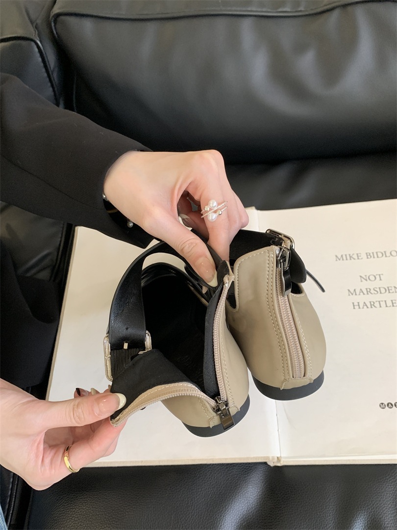 틈새 빈티지 퍼스널 리벳 벨트 버클 플랫 하단 리어 지퍼 싱글 신발 작은 가죽 신발 2025 봄 새로운 한국 스타일 스트리트 스타일스토어 가기