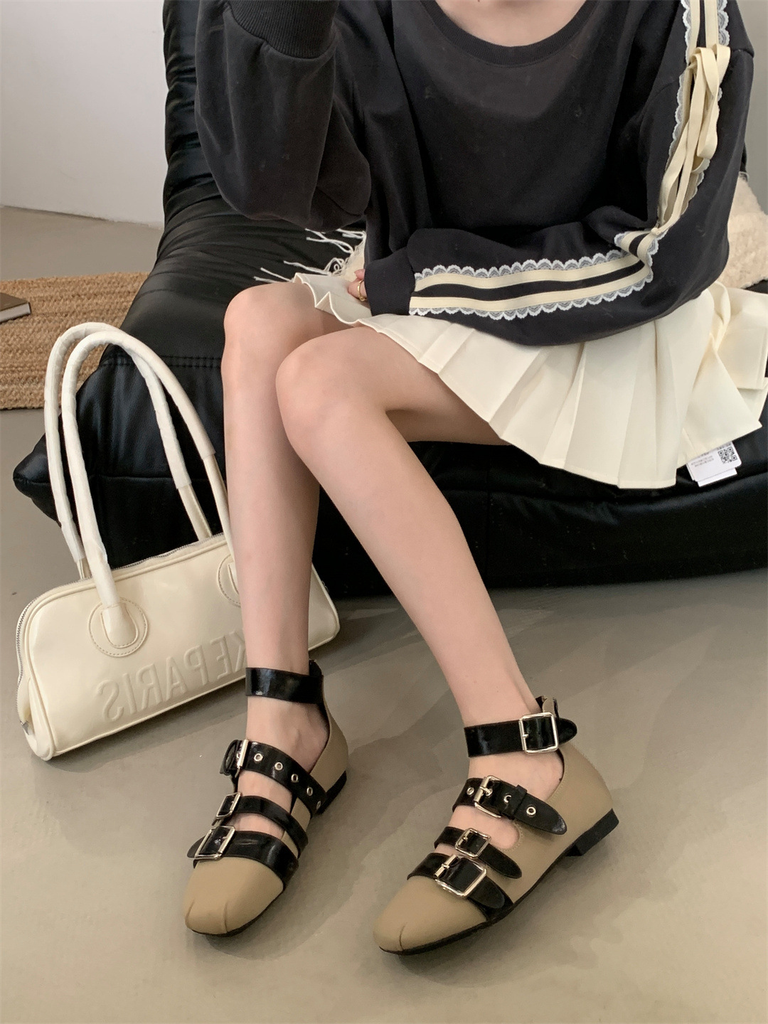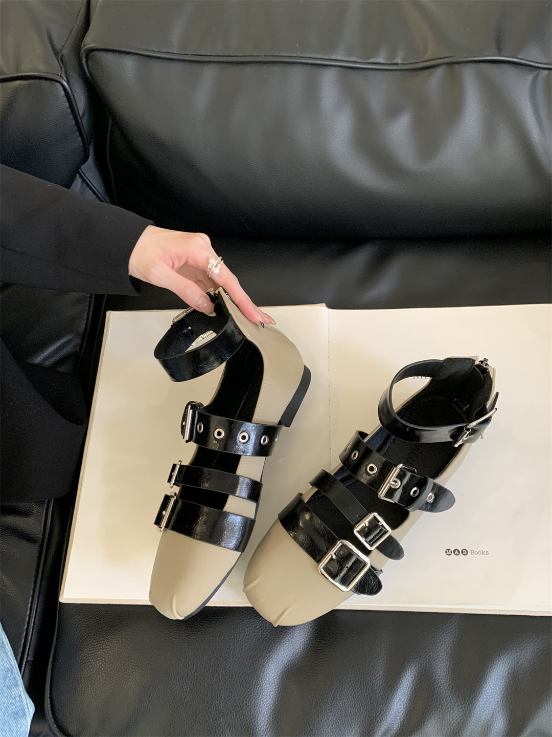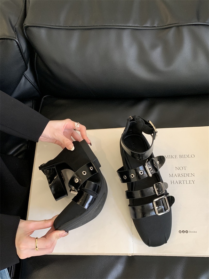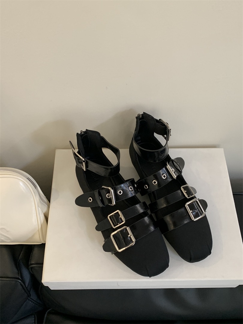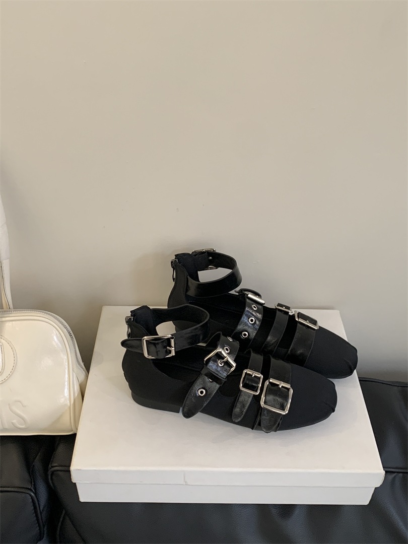 틈새 빈티지 퍼스널 리벳 벨트 버클 플랫 하단 리어 지퍼 싱글 신발 작은 가죽 신발 2025 봄 새로운 한국 스타일 스트리트 스타일스토어 가기