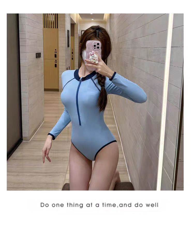 2025 새로운 in 스타일 긴 소매 자외선 차단제 보수적 인 하이 칼라 지퍼 원바디 수영 세트 스노클링 서핑 세트 여성스토어 가기