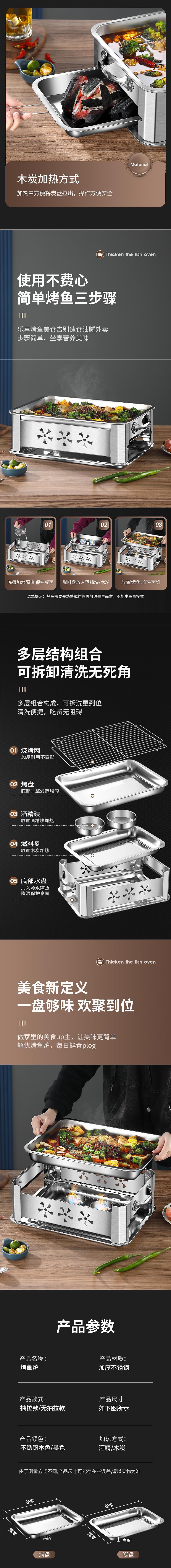 생선 구이 오븐 직사각형 스테인리스 생선 구이 접시 가구 통합 냄비 나무 상업 생선 구이 트레이 바베큐 오븐