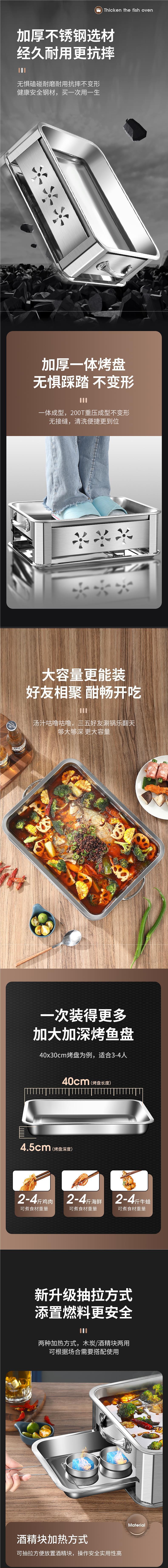 생선 구이 오븐 직사각형 스테인리스 생선 구이 접시 가구 통합 냄비 나무 상업 생선 구이 트레이 바베큐 오븐스토어 가기