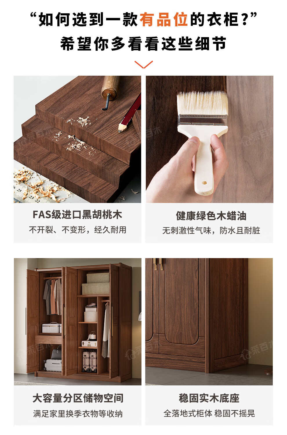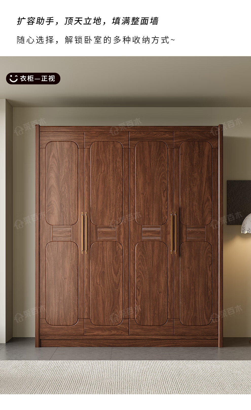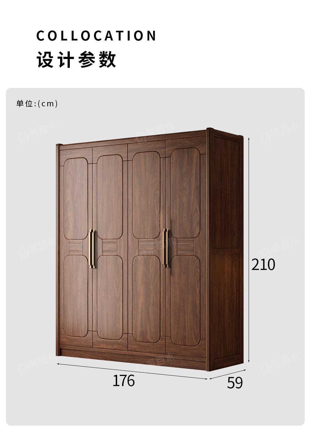 남미 블랙 호두 옷장 문-탑 가정용 침실 복고풍 작은 아파트 걸이 옷장 더블 도어 옷장스토어 가기