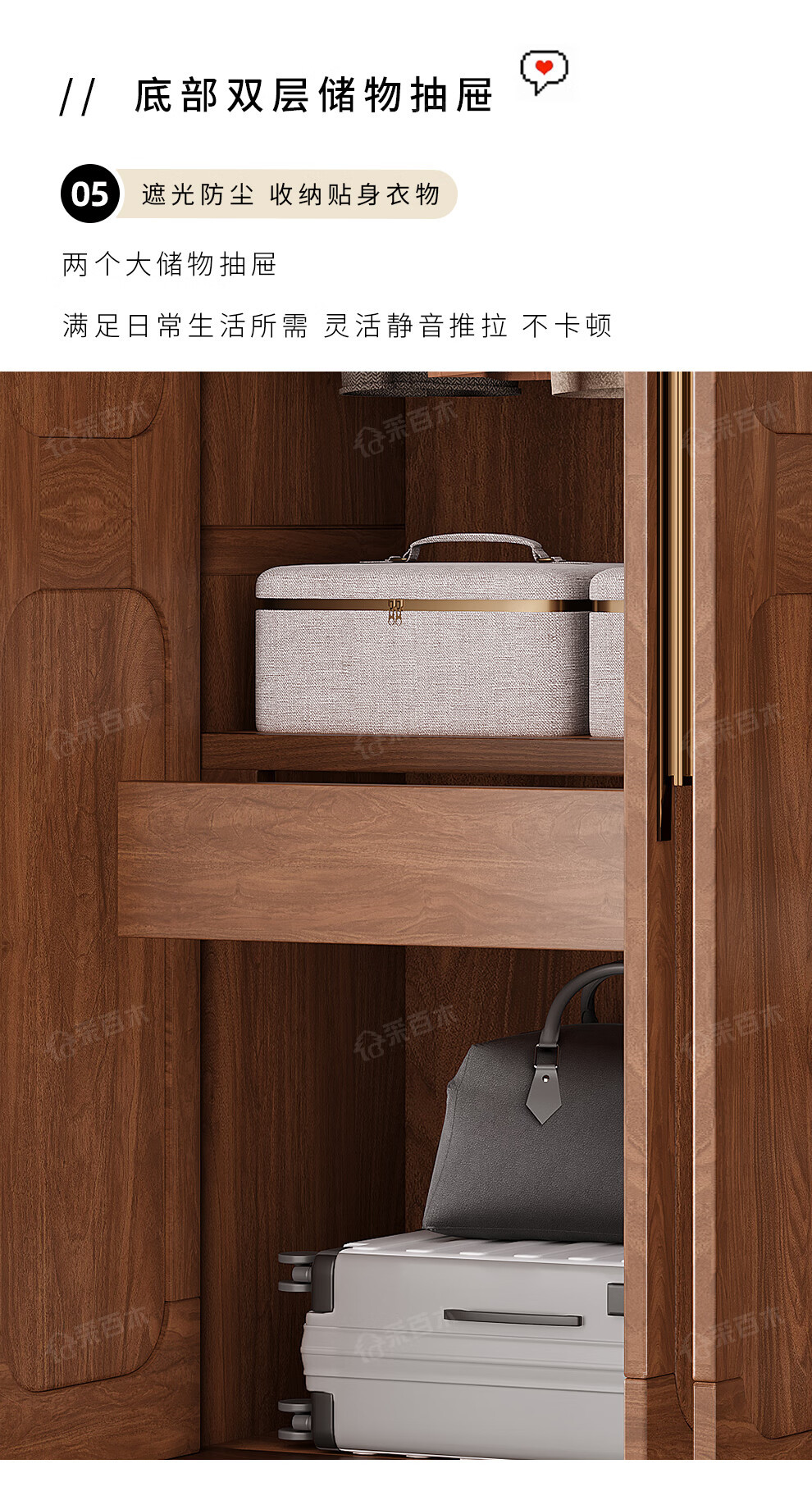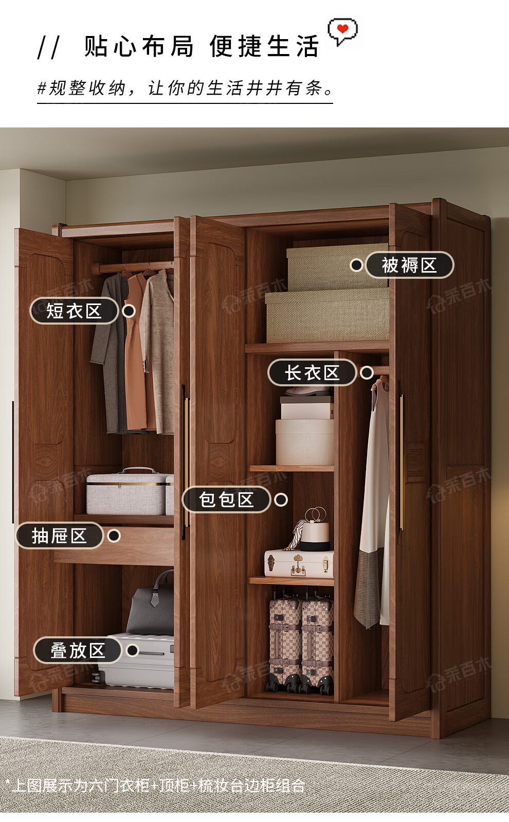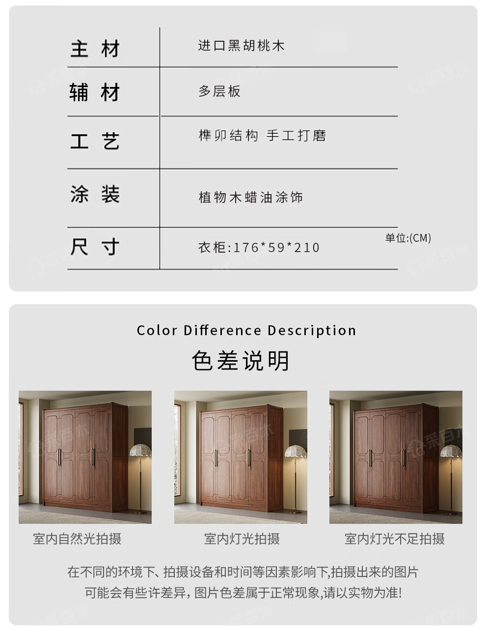 남미 블랙 호두 옷장 문-탑 가정용 침실 복고풍 작은 아파트 걸이 옷장 더블 도어 옷장스토어 가기