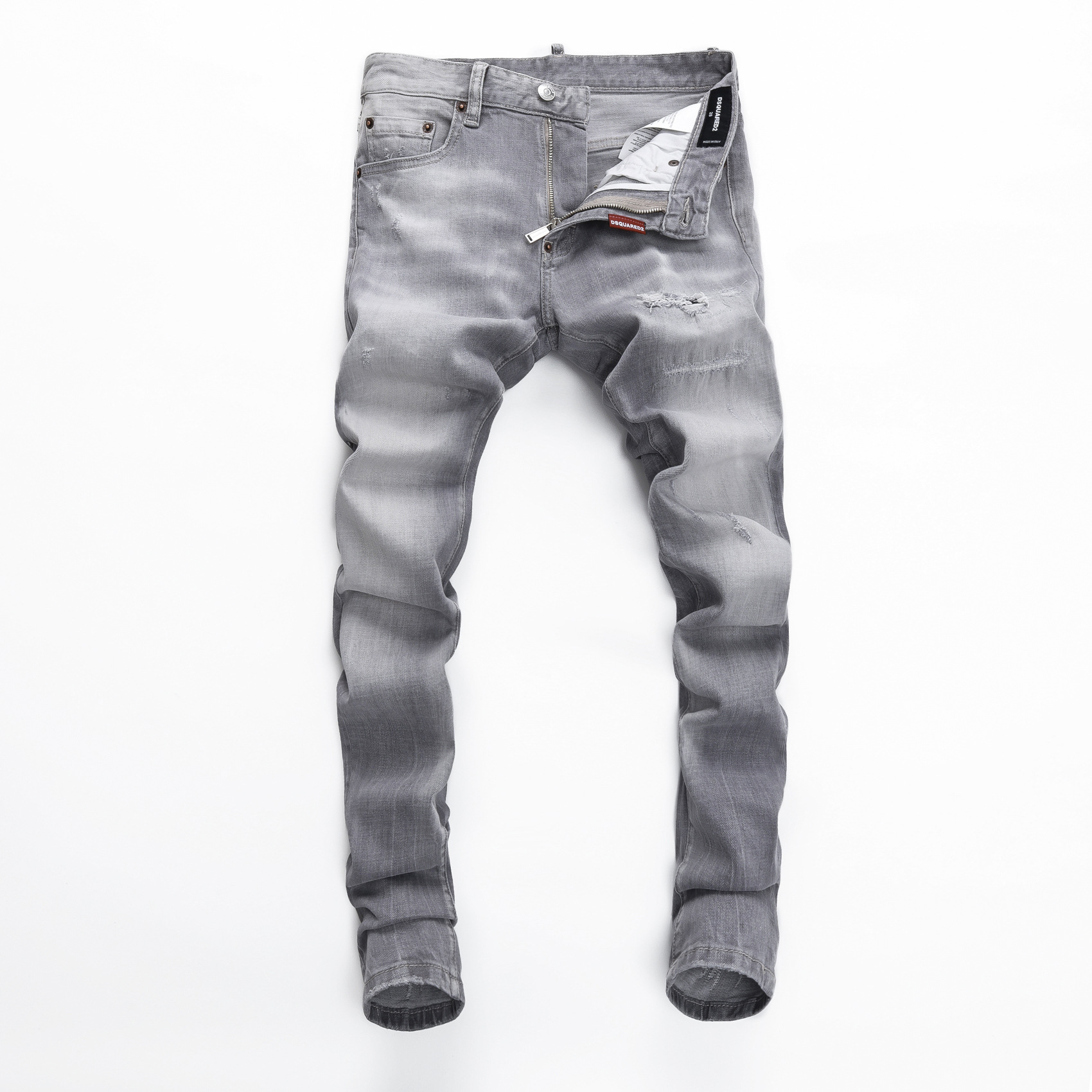 2025 봄과 가을 독특한 탄성 빅 브레이크 독특한 홍콩 스타일 타이트 나이트 클럽 패션 찢어진 D2 청바지 남성 바지 그레이스토어 가기