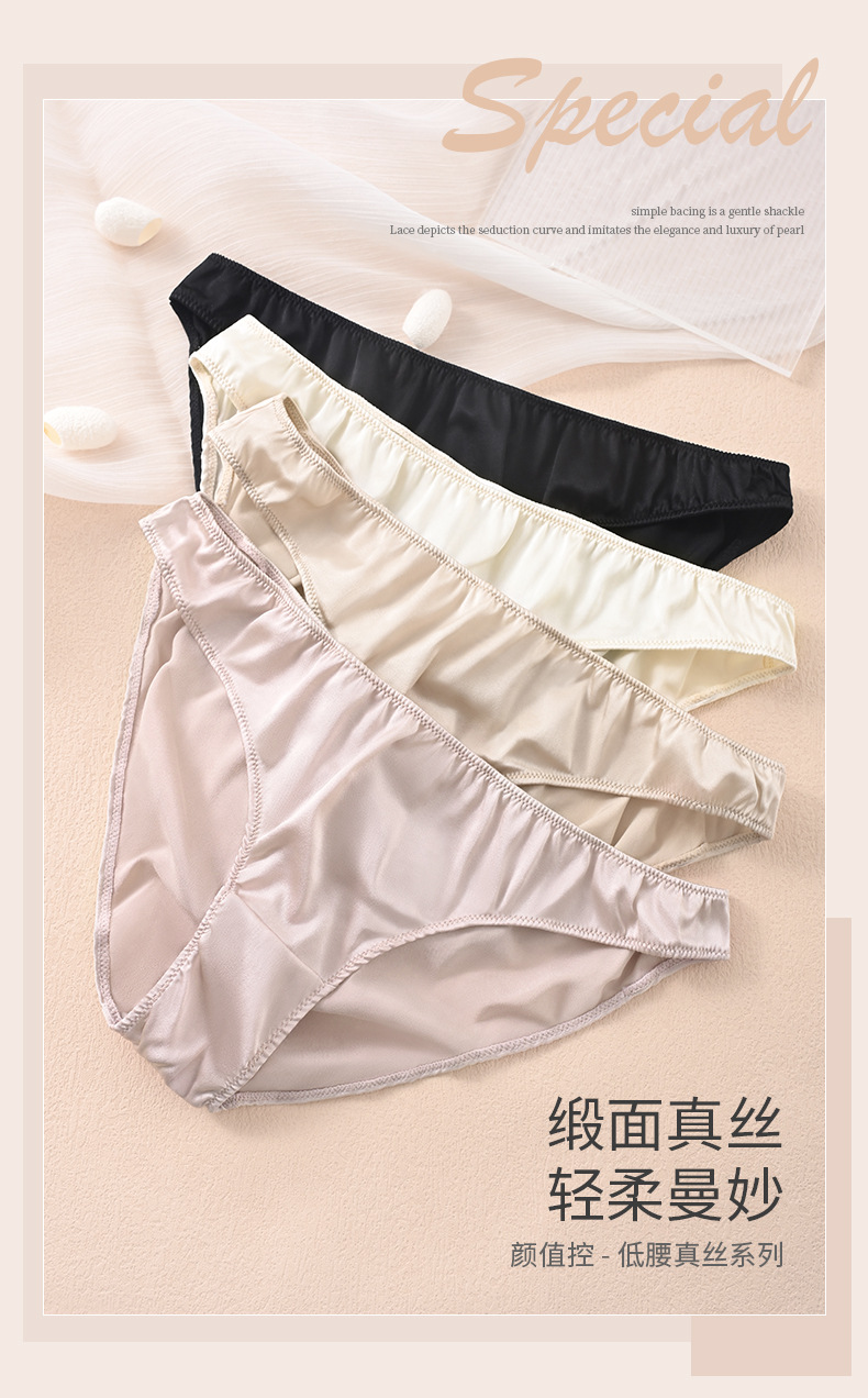 탱지 실크 중간 낮은 허리 얇은 새틴 여성용 속옷 양면 뽕나무 실크 쉬스 단순 삼각형 반바지스토어 가기
