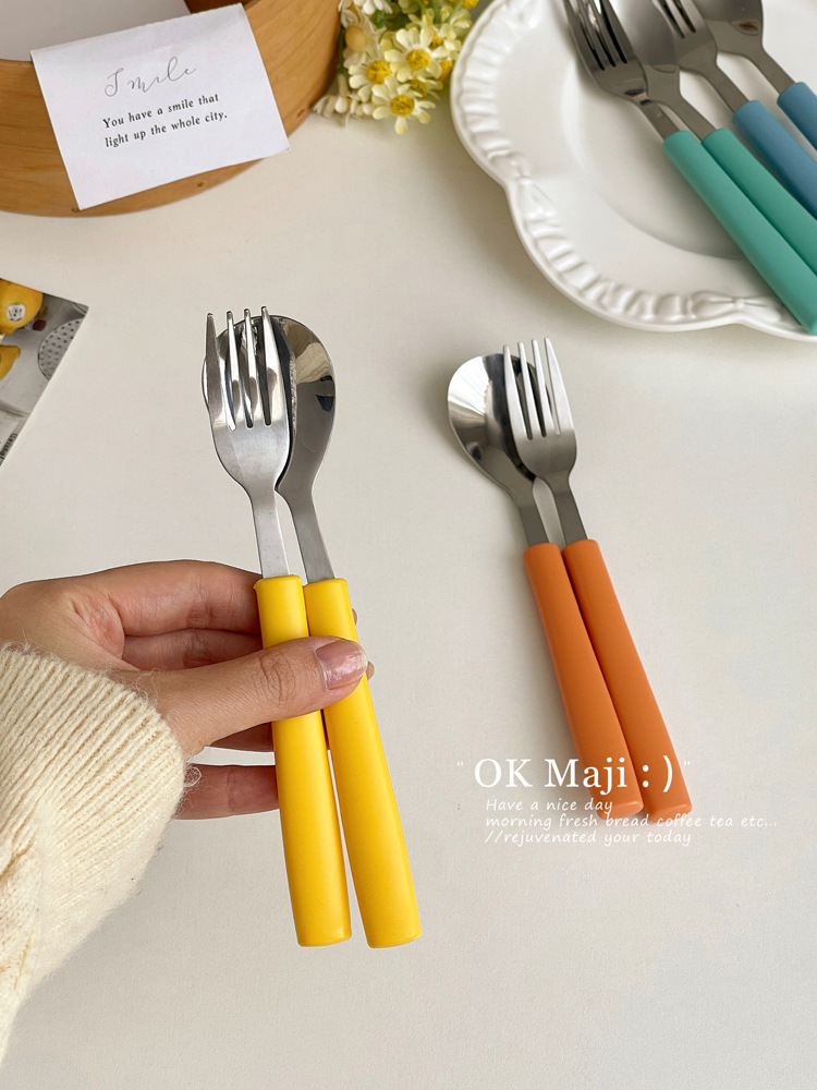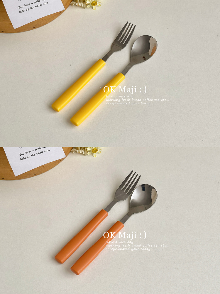 • [무료보관함] 스테인리스 스푼&포크 세트-옐로우