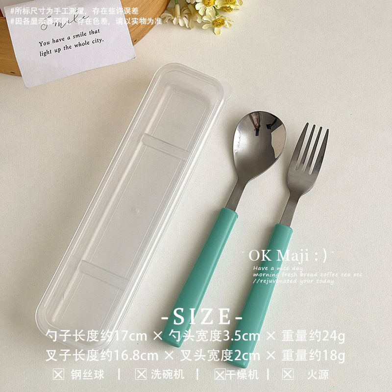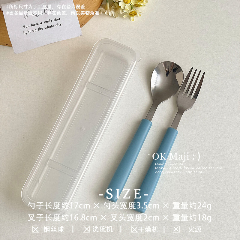휴대용 식기 세트 1 인 스테인레스 스틸 스푼 포크 2 피스 포크 스푼 저장 상자 쌀 식기스토어 가기
