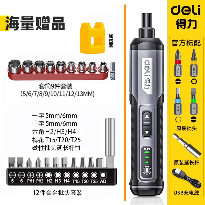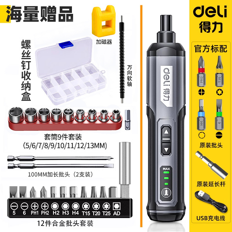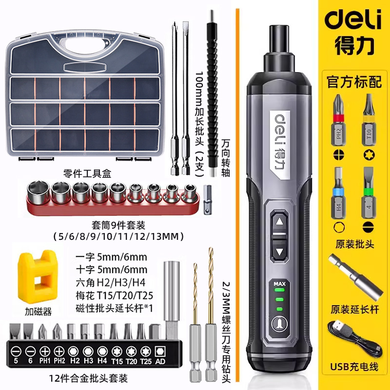 델리 전기 드라이버 충전식 가정용 드라이버 작은 다기능 전기 배치 리튬 배터리 자동 공구 세트스토어 가기